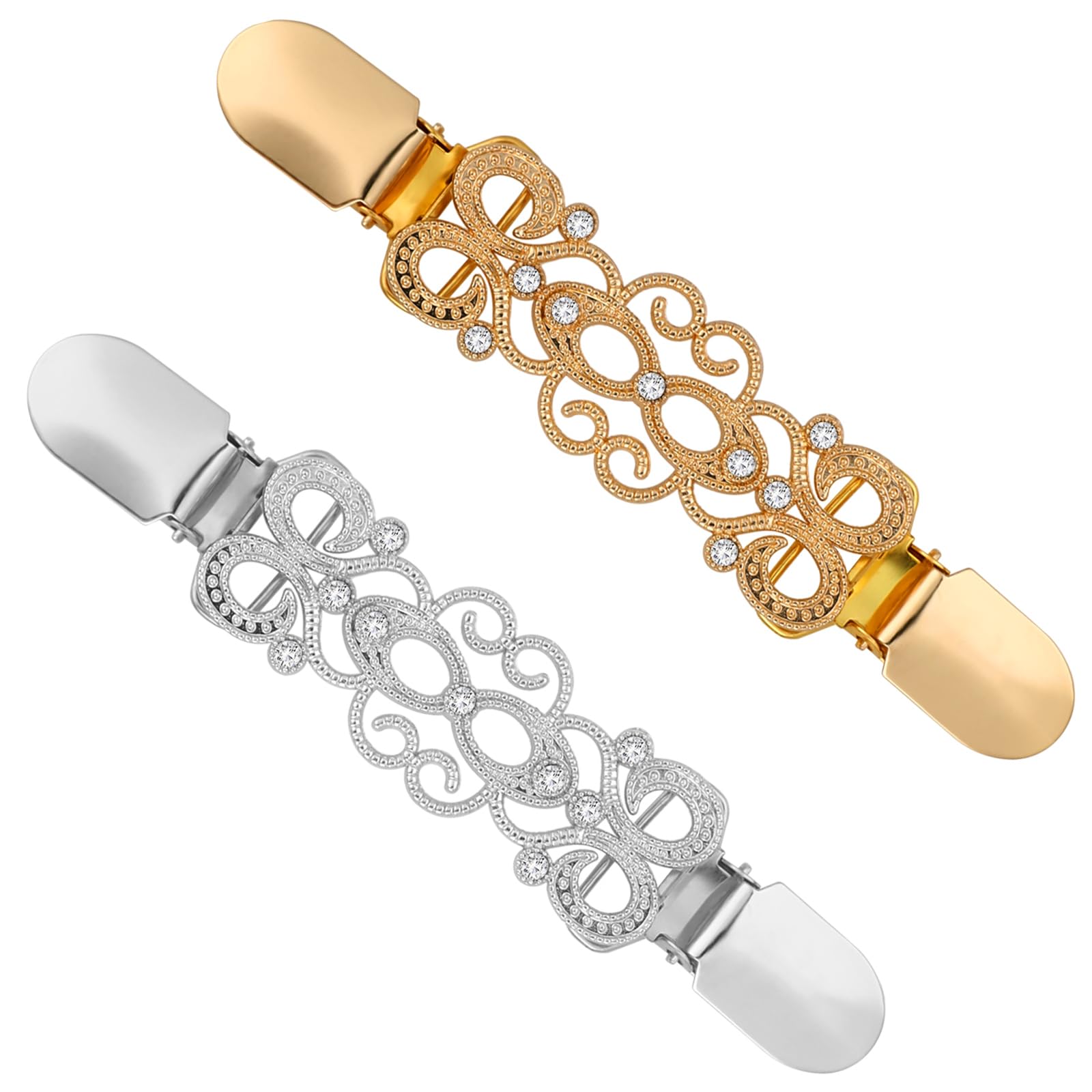 2PCS Cinch Clips Gold Silver Dress Clips Back Cinch, Vintage Sweater Waist Clip Brooch Pins Clips for Women Fashion, Shawl Scarf Cincher Clip Clothing Cinch Clip