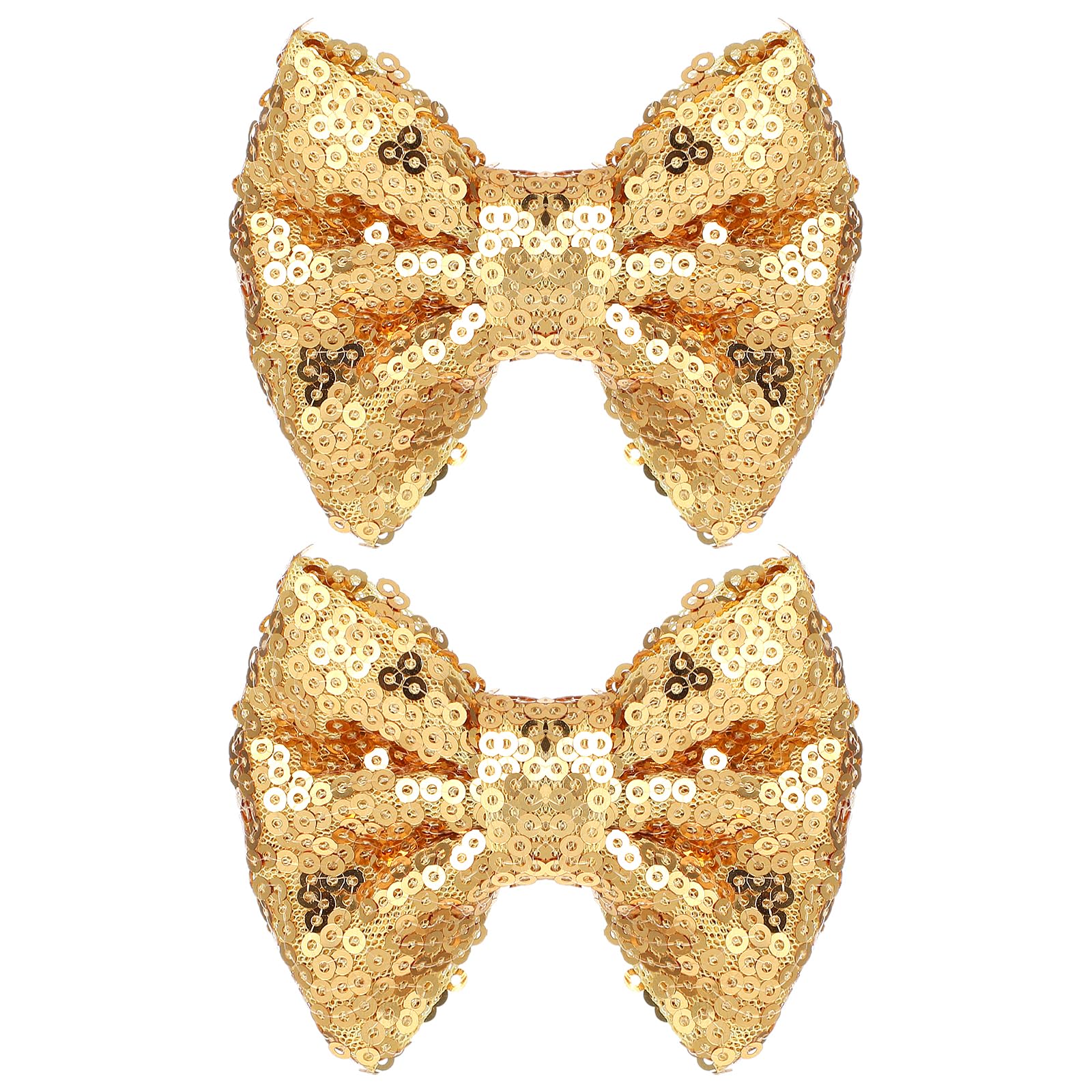 2Pcs Glitter Bows 3Inch Clip in Bows Sparkly Bows For Girls Clip on Bow Small Hair Bows Sequin Gold Bows Gold Hair Bow Big Gold Bow Baby Hair Clips Sparkling Sequin Bow Tie Hair Clip for Girls Women