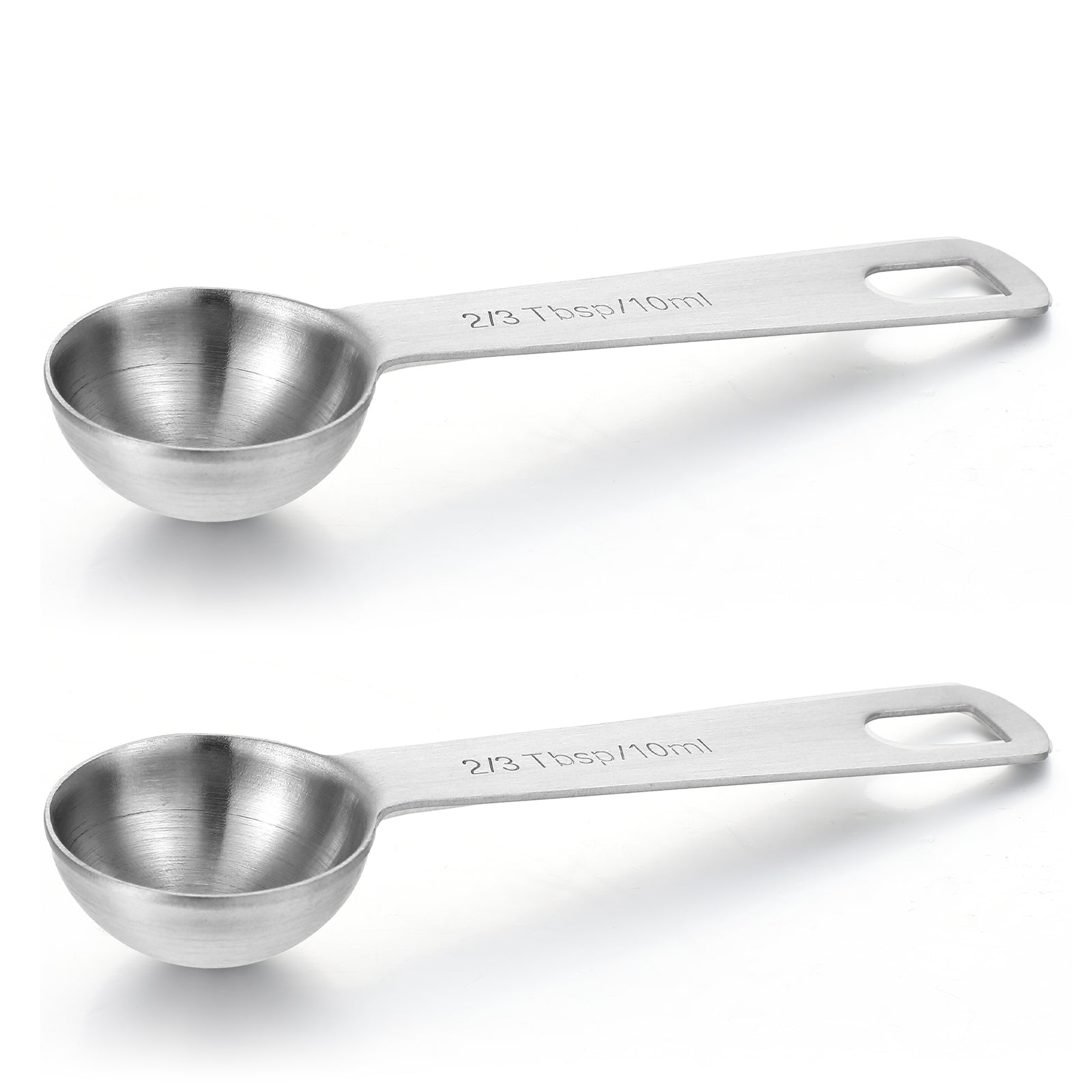 2PCS Metal Measuring Spoons 10 Ml (2 Teaspoon, 2/3 Tablespoon, 10 Cc, 1/3 Oz) with Long Handle Single Teaspoon Scoop Stainless Steel for Coffee Loose Tea Protein Spices Powders and Other Dry Goods