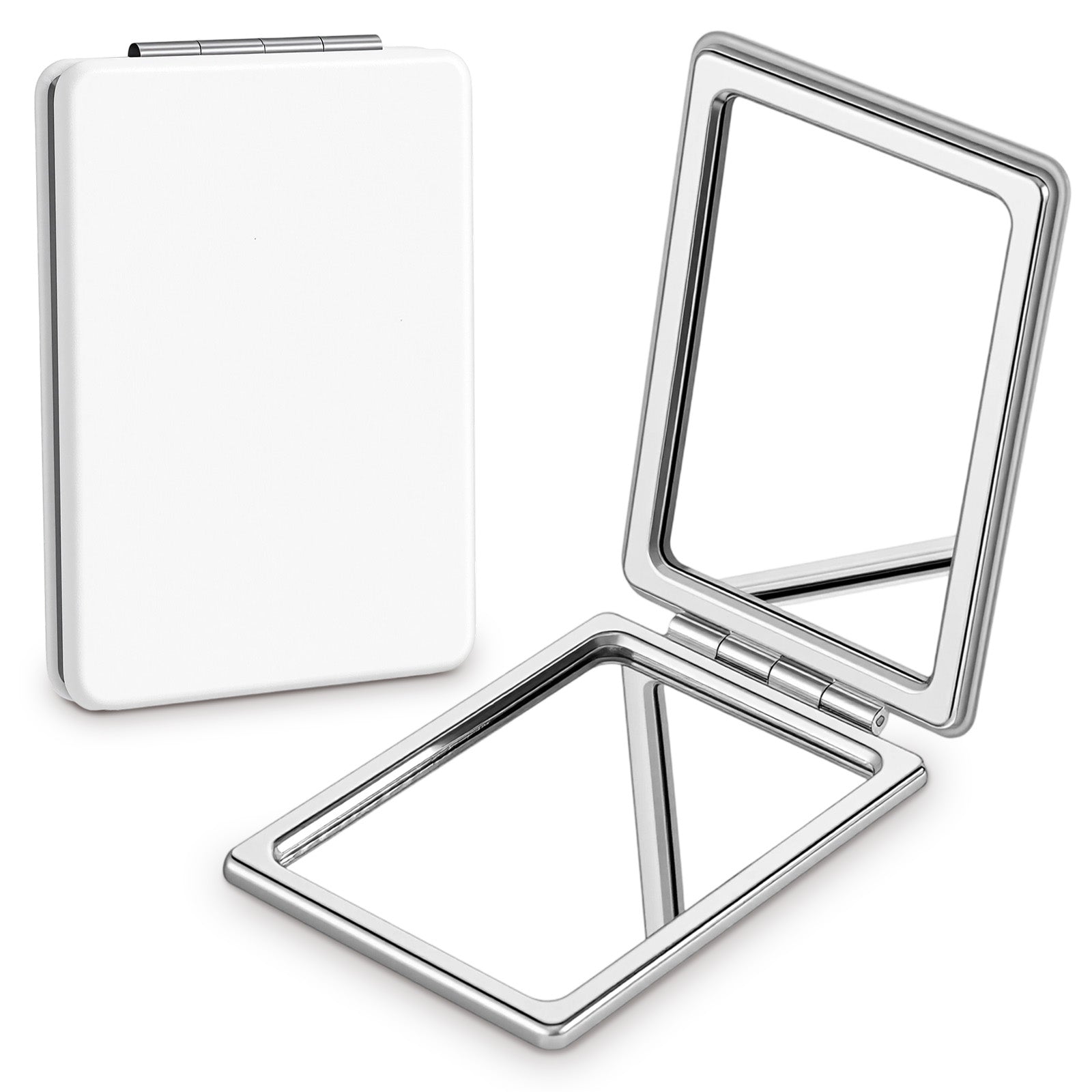 2PCS Portable Double-Sided Mirror with Leather Cover, Compact 1x/2x Makeup Mirror for Travel, Handbag, Pocket (White)