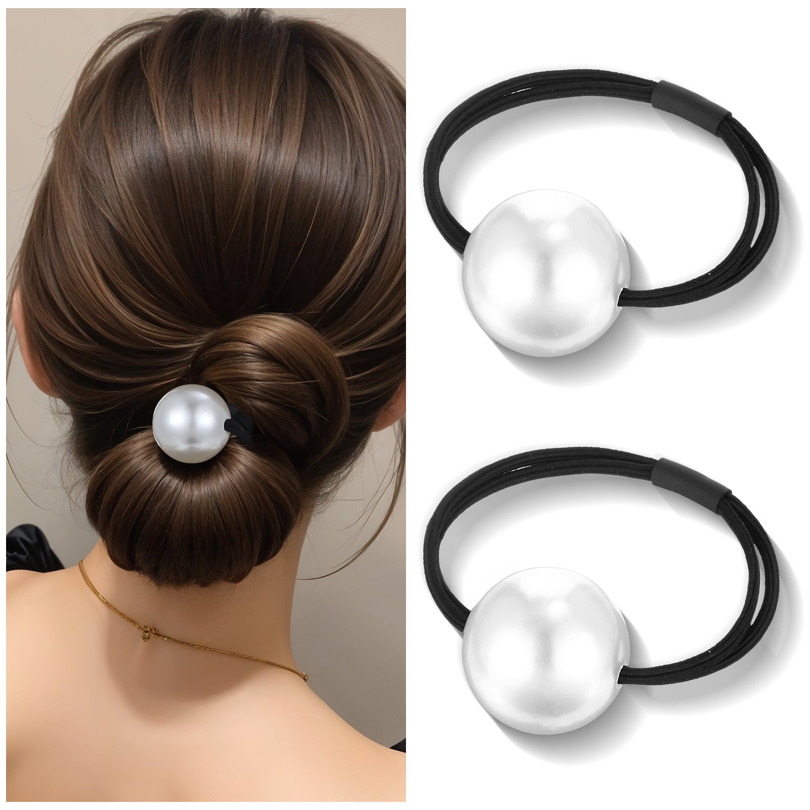 2pcs White Large Pearl Hair Accessories?Ymapinc Elastic Hair Ties With Pearl Accessories for Women's Thick Hair, High Ponytails