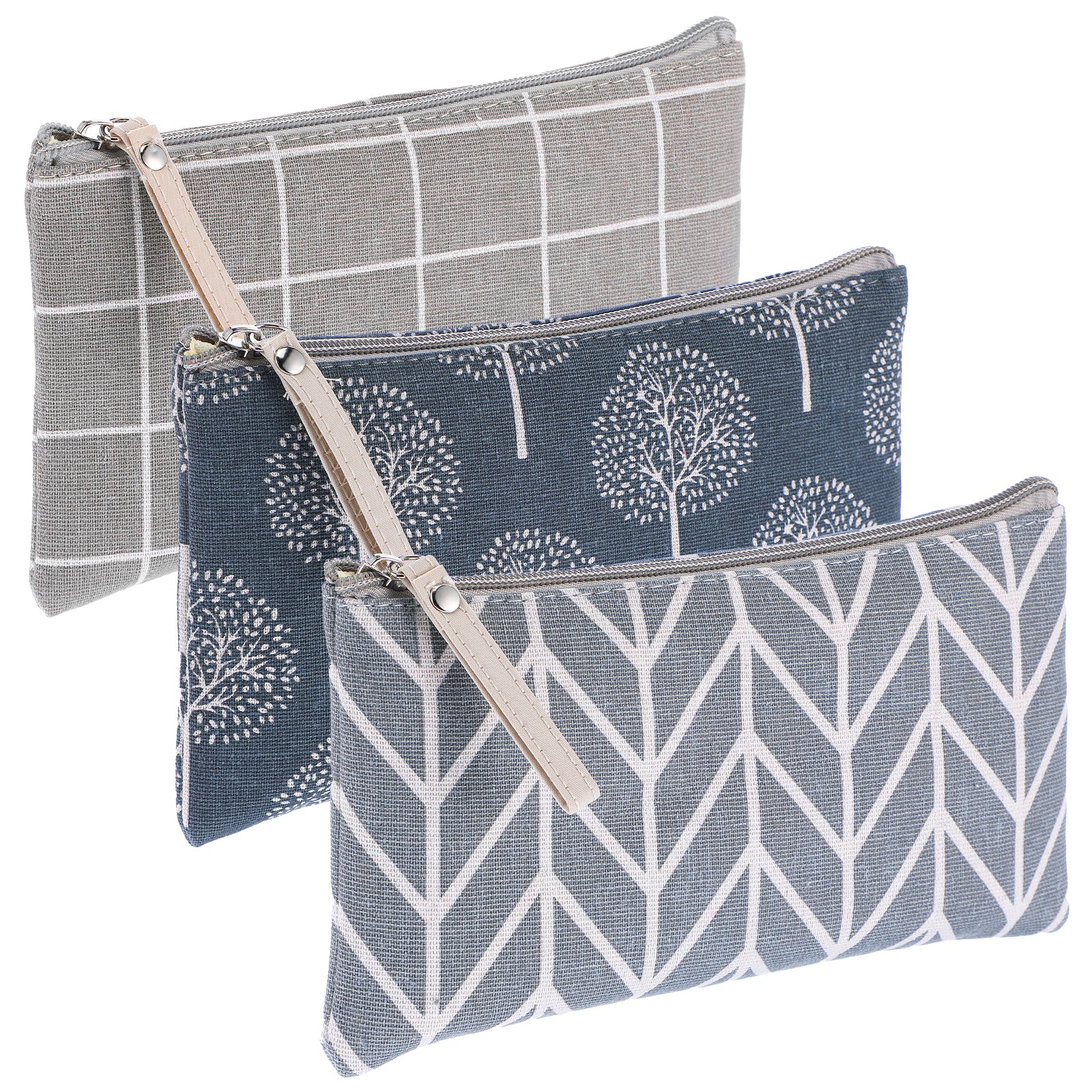 3 PCS Canvas Cosmetic Bag for Purse, Multi-Function Small Zipper Makeup Bag Travel Cute Makeup Pouch Cosmetic Pouch for Women Girls Vacation Travel Toiletry Bags