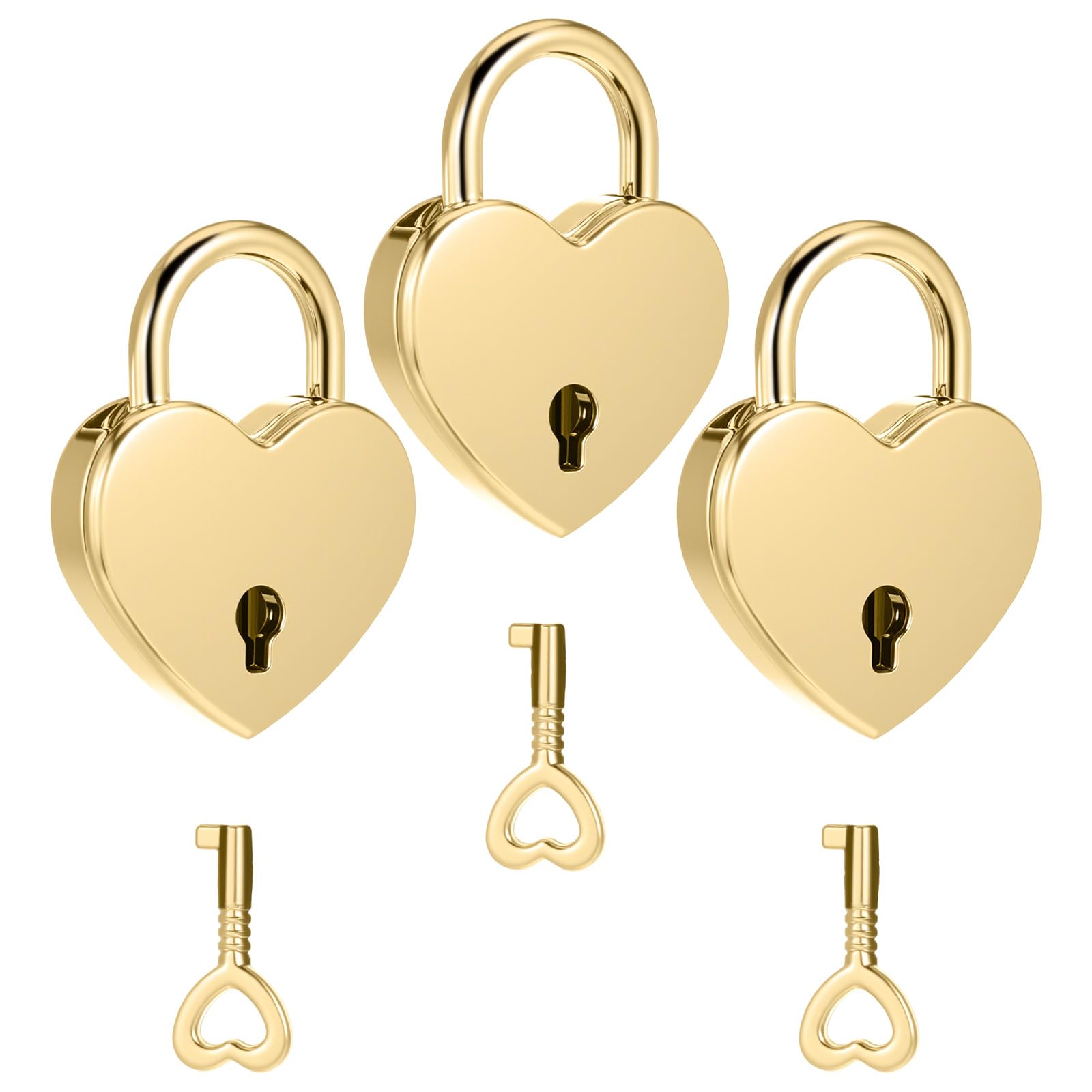 3 Pcs Heart Shaped Lock Gold Heart Shaped Padlock Mini Vintage Locks with Key Small Metal Padlock Archaize Style Lock and Key for Jewelry Box Diary Book Handbag Storage Box