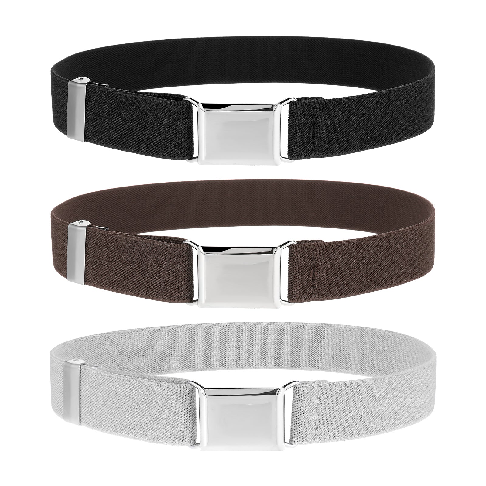 3 Pcs Kids Belt Magnetic Toddler Belt Adjustable Elastic Belts Boys Girls Fashion Stretch Belts with Silver Buckle Waistband for Children's Jeans, Shorts & Trousers, Uniform, Black, White, Coffee