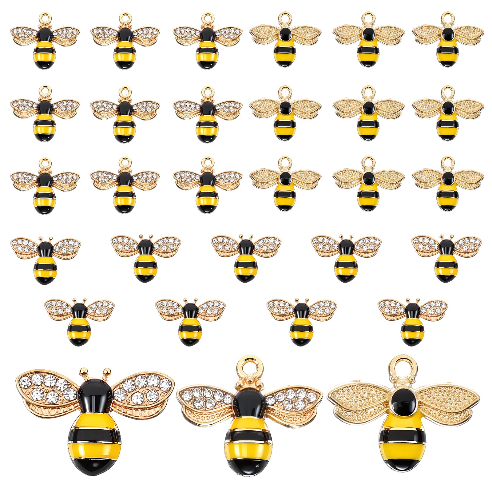 30 Pcs Bee Charms for Jewelry Making (10 each for 3 styles)