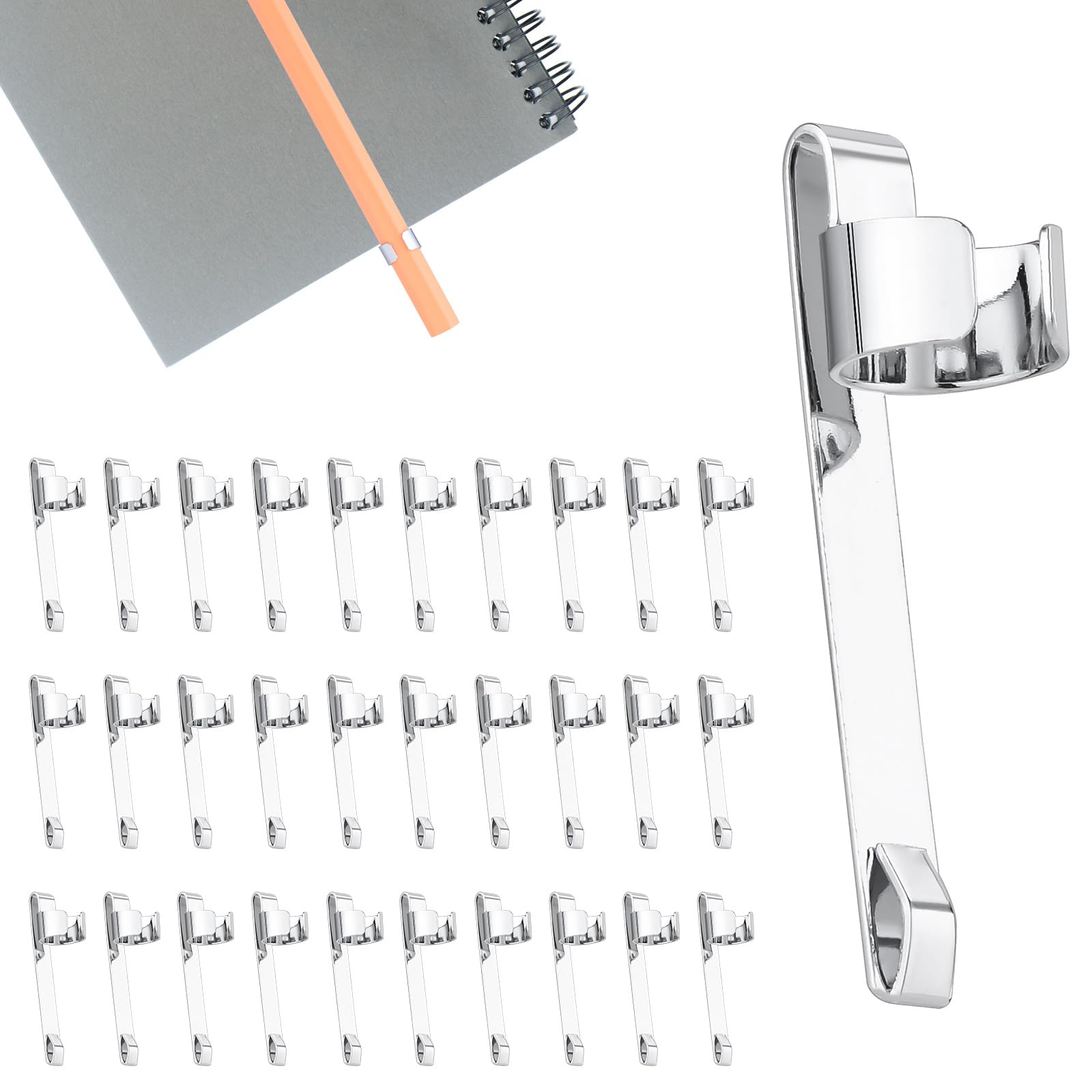 30 PCS Metal Pen Holder Clip Snap in Pen Clip Portable Pencil Clip Slide on Pencil Holder for Clipboard, Notebook School Classroom Students, Office, Home