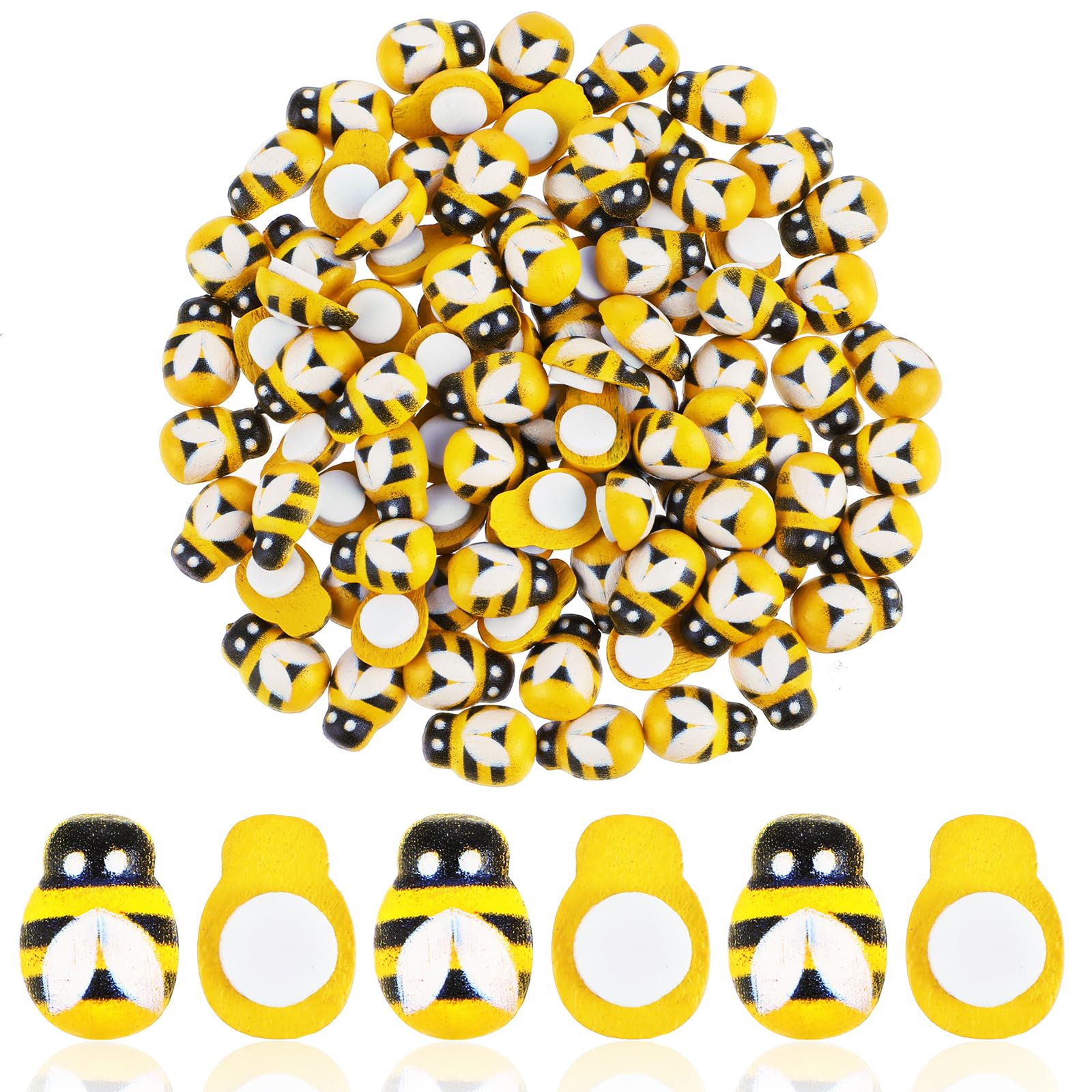 Teaaha 100 PCS Mini Bee Stickers Self-Adhesive Tiny Wooden Bee Decor Painted Flatback Craft Bees for Crafts Scrapbooking Baby Birthday Party Decoration Embellishments DIY