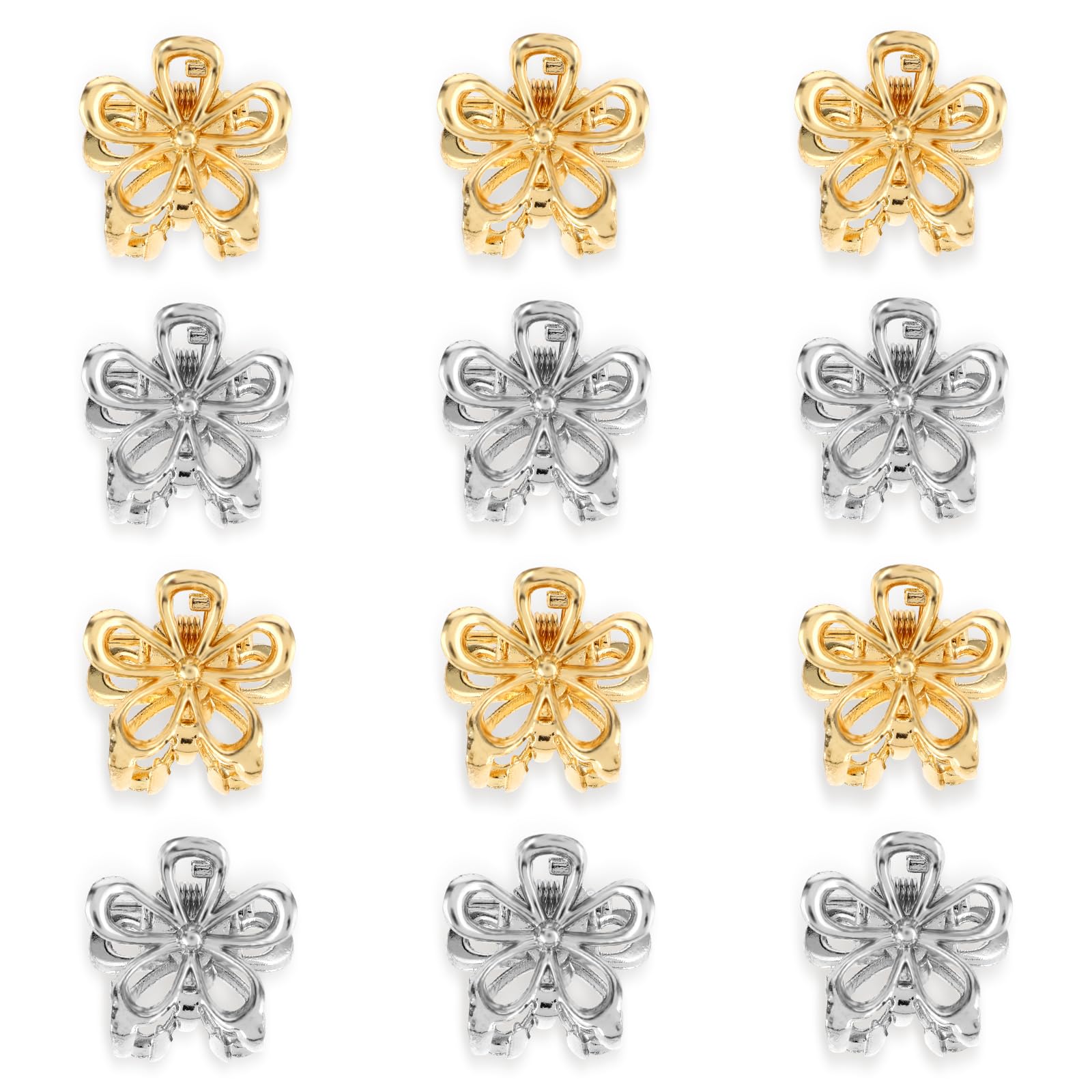Teaaha 12 PCS Flower Hair Clips Small Cute Flower Claw Clips Metal Mini Clips for Thin Thick Hair Gold Silver Flower Claw Clips Sweet Artificial Bangs Clips Decorative Hair Accessories