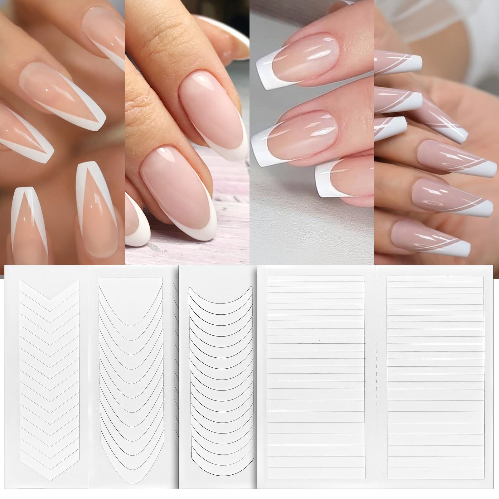 Teaaha 1638 PCS French Manicure Stickers, French Tip Nail Stickers, French Tip Guides 4 Designs French Nail Sticker for Nails Self-Adhesive Nail Art Tips Guides for DIY Decoration Stencil (36 Sheets)