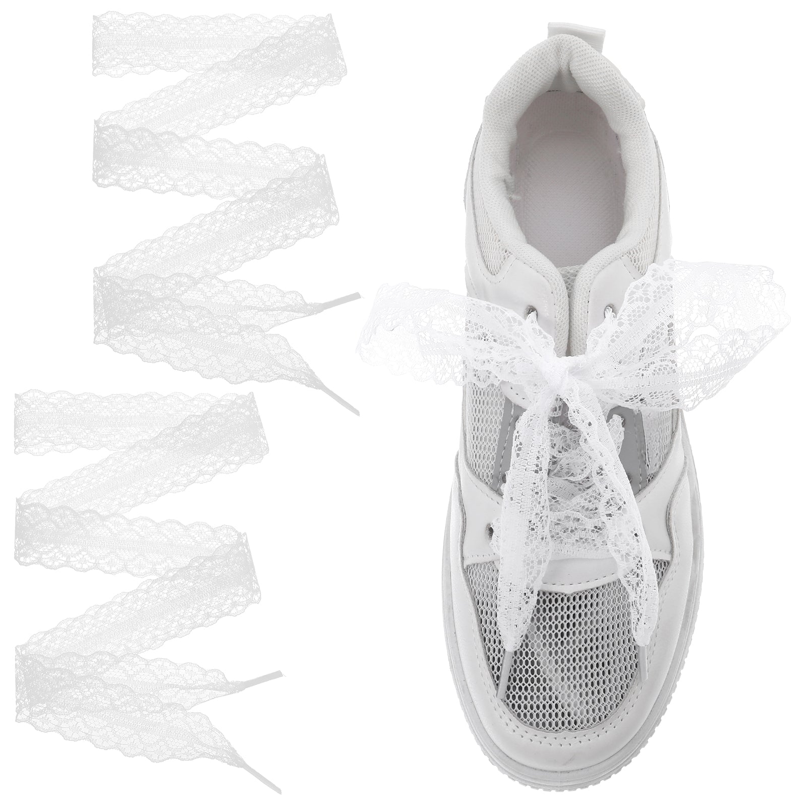 Teaaha 2 Pairs White Lace Shoelaces, 3cm Wide Fancy Flat Ribbon Shoe Laces for Women, 47 Inch Long Decorative Shoelaces for Sneakers, Boots, Casual Shoes, White