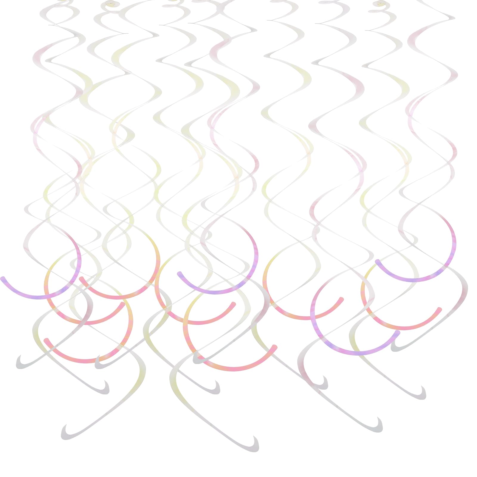 Teaaha 24PCS Iridescent White Hanging Swirls, Hanging Swirl Decorations Iridescent-Streamers Plastic Streamers for Ceiling, Silver Hanging Streamers for Birthday Party Wedding Baby Shower