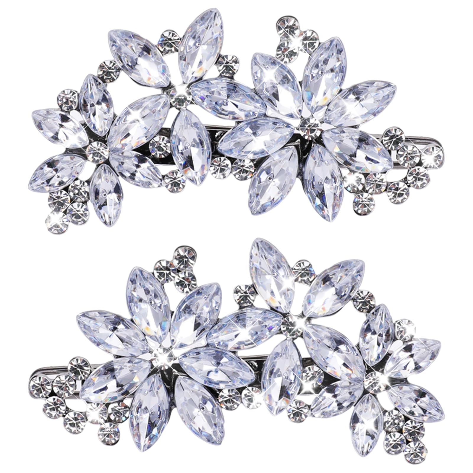 Teaaha 2PCS Diamante Hair Clips for Women, Rhinestones Bridal Hair Clips, Silver Wedding Hair Accessories Hair Pins Crystal Flower Hair Clips Wedding Headpiece Hair Clips for Brides Bridesmaids Girls