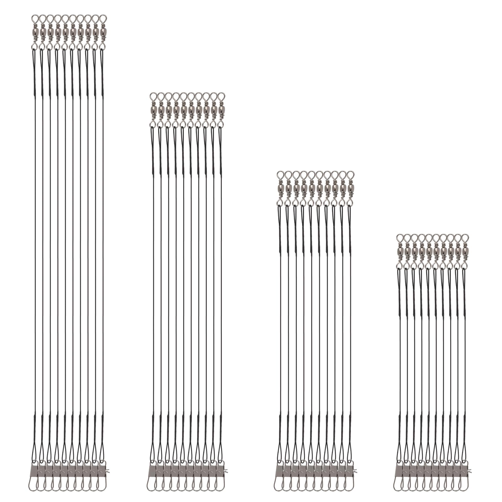 40pcs black fishing leaders with swivels, 15/20/25/30cm, 10 pieces of each size