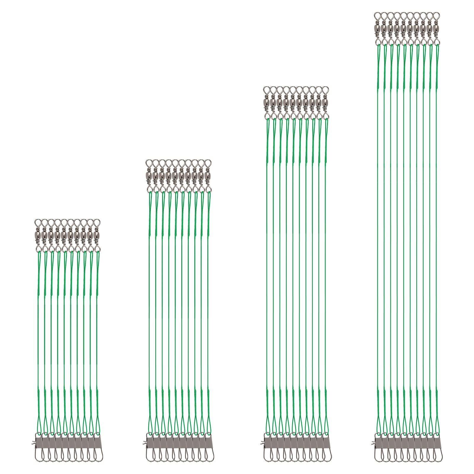 40pcs green fishing leaders with swivels, 15/20/25/30cm, 10 pieces of each size