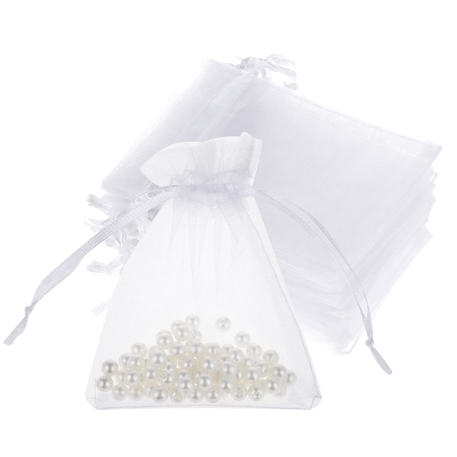 Teaaha 50PCS Organza Bags, 3 x 4 Inch Sheer Organza Bags, Mesh Gift Bags Drawstring Organza Jewelry Pouches for Party Favor Wedding Makeup Organza Bag Net Gift (White)