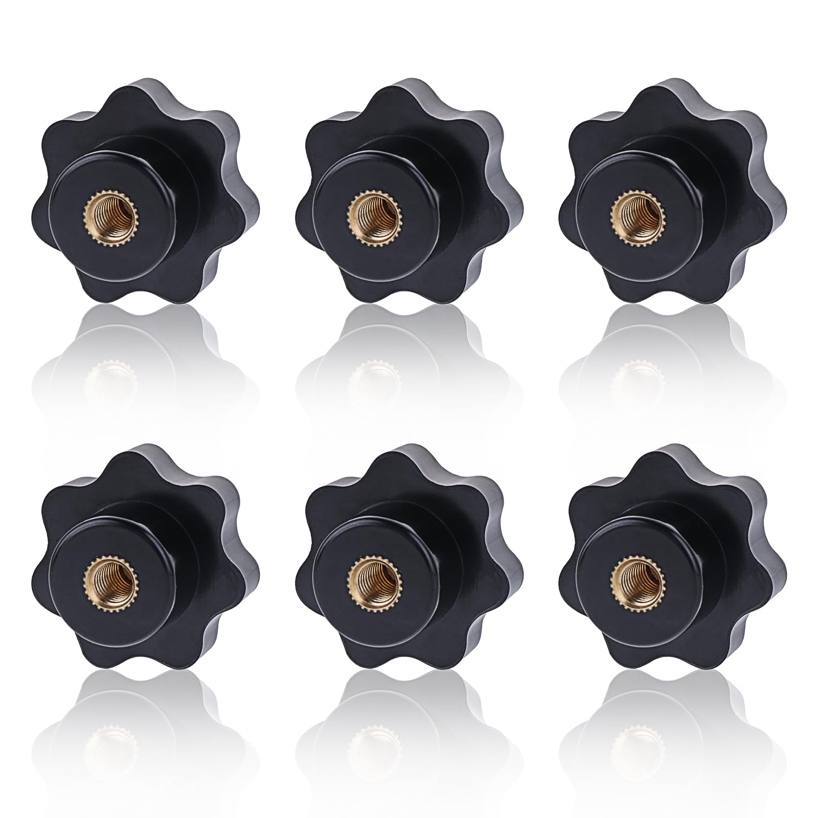 Teaaha 6PCS 6-Star Knobs M6-1/4-20 Inch Screw-On Type, Knurled Threaded Nylon Clamping Knobs for Hand Tightening (Black, M6)