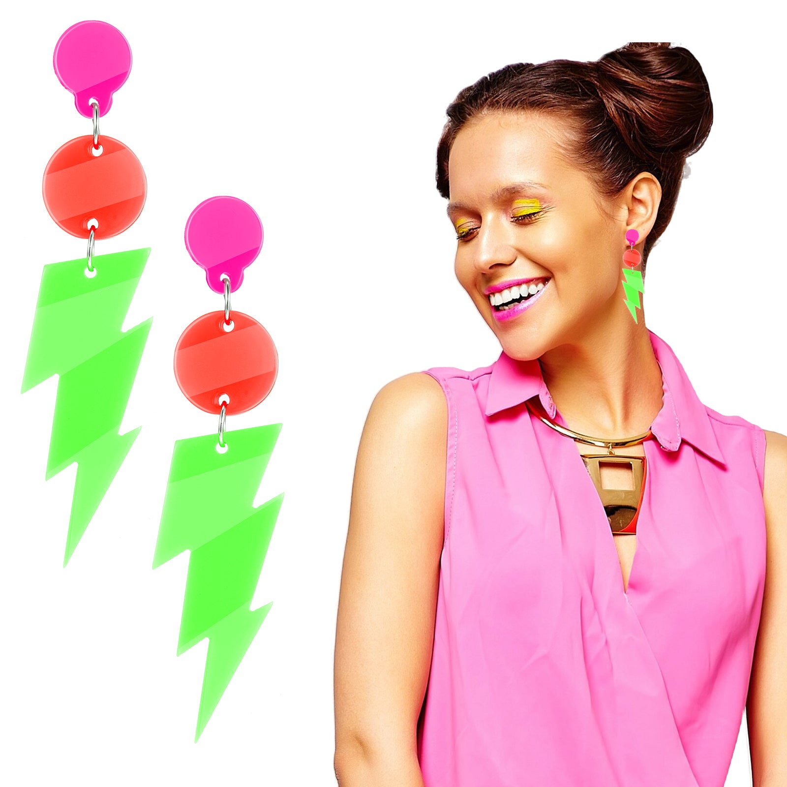 1 pair of 80s 90s stud earrings, retro acrylic earrings, neon earrings, vintage earrings for theme party, costume party, masquerade, woman, girl