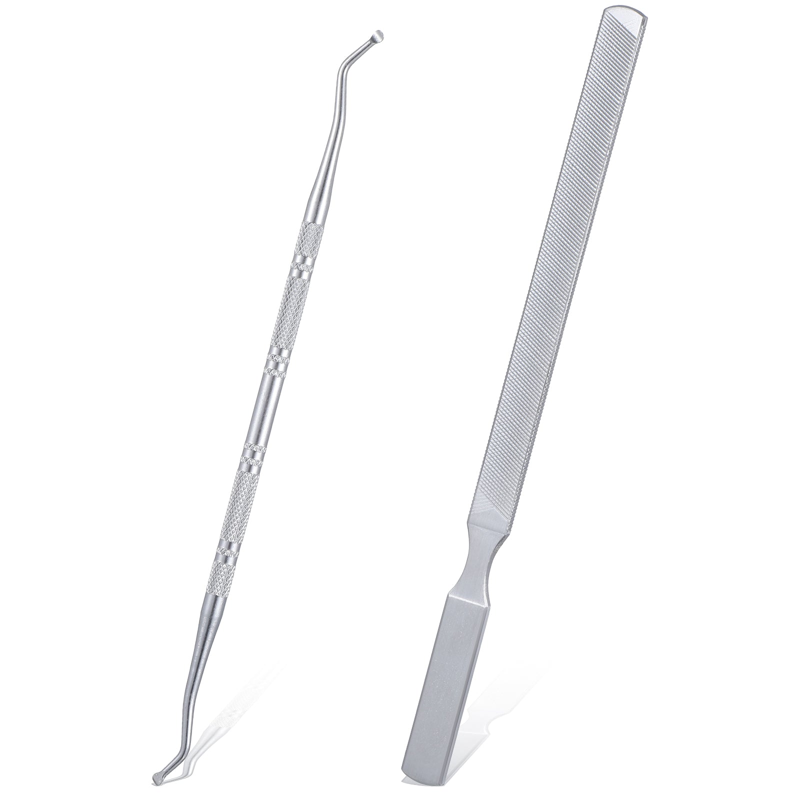 Tyqour 2 Pcs Ingrown Toenail Remover Tool Under Nail Cleaner Tool Double Ended 16cm Toenail Lifter and 18cm Four-Sided Nail File Cleaning Scooper Stainless Steel Manicure Pedicure Nails Care Tools