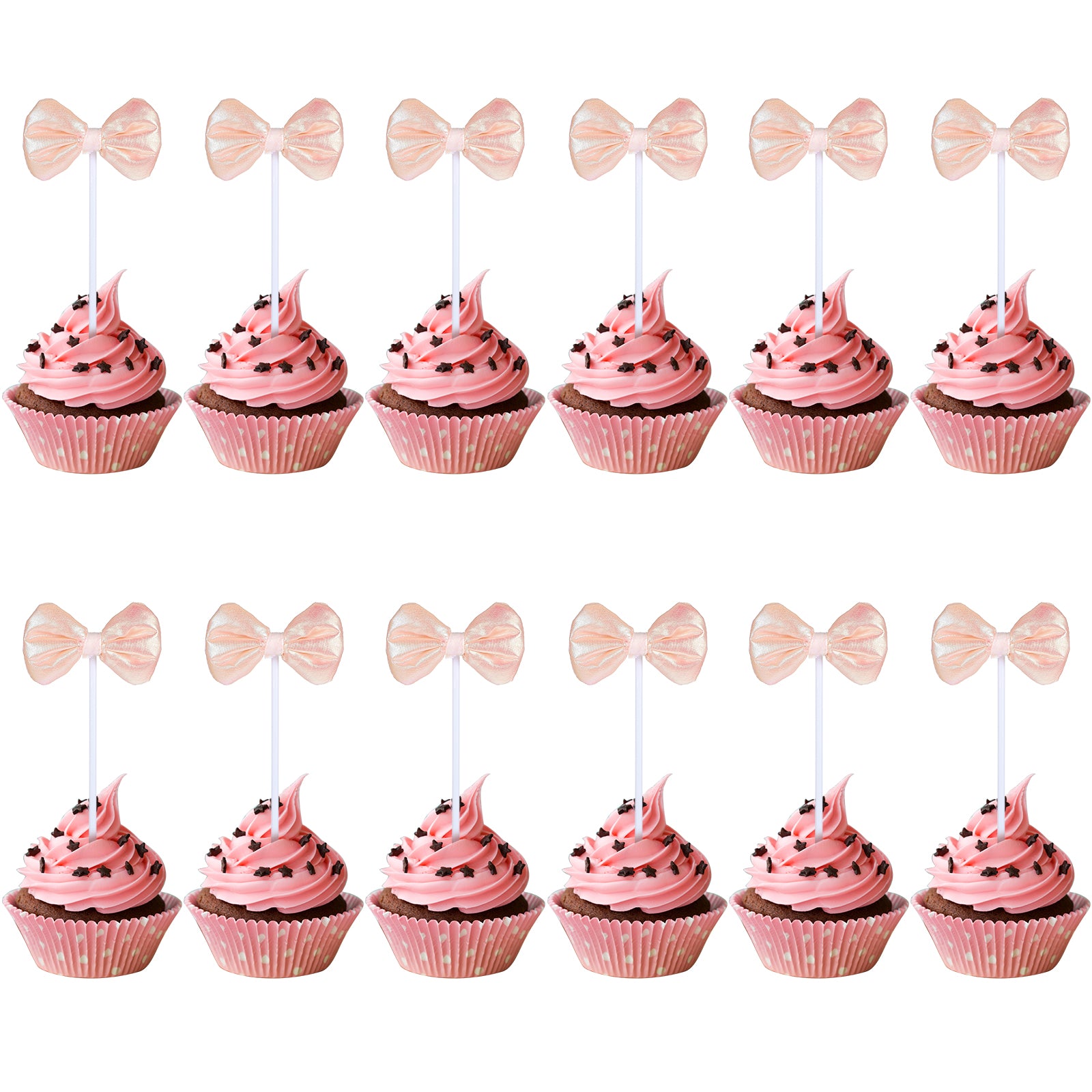 Tyqour 20PCS Pink Bow Cupcake Toppers Birthday Decorations, Bow Cake Topper Decorations for Baby Shower, Bridal Shower, Wedding, and Girl's Birthday Party Supplies(Light pink)