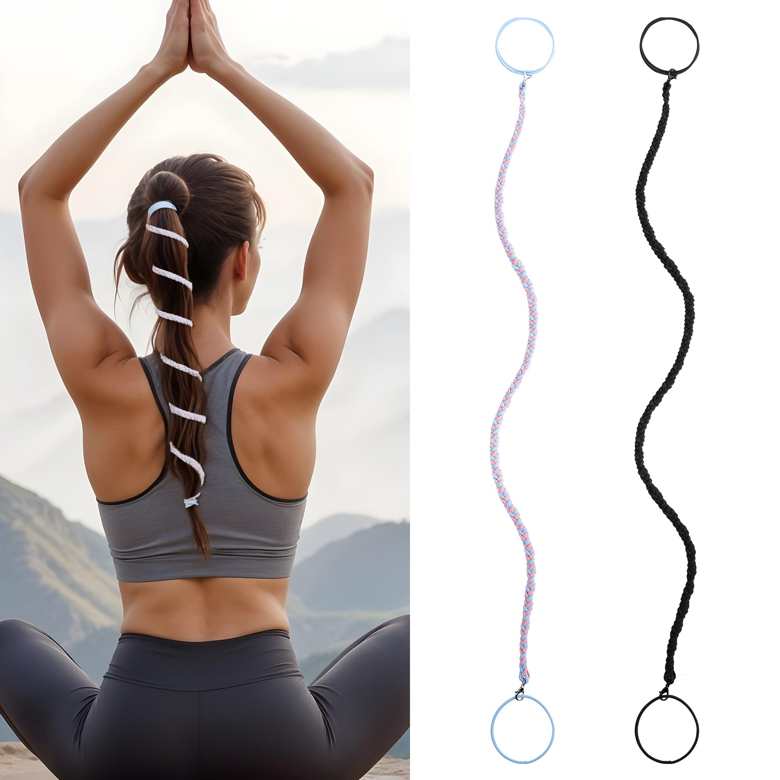 Tyqour 2pcs 31inch Spiral Hair Ties for Women, Black & Pink Blue Braided Hair Ties, Elastic Ponytail Holders for Long Hair, No Damage Sports Hair Bands