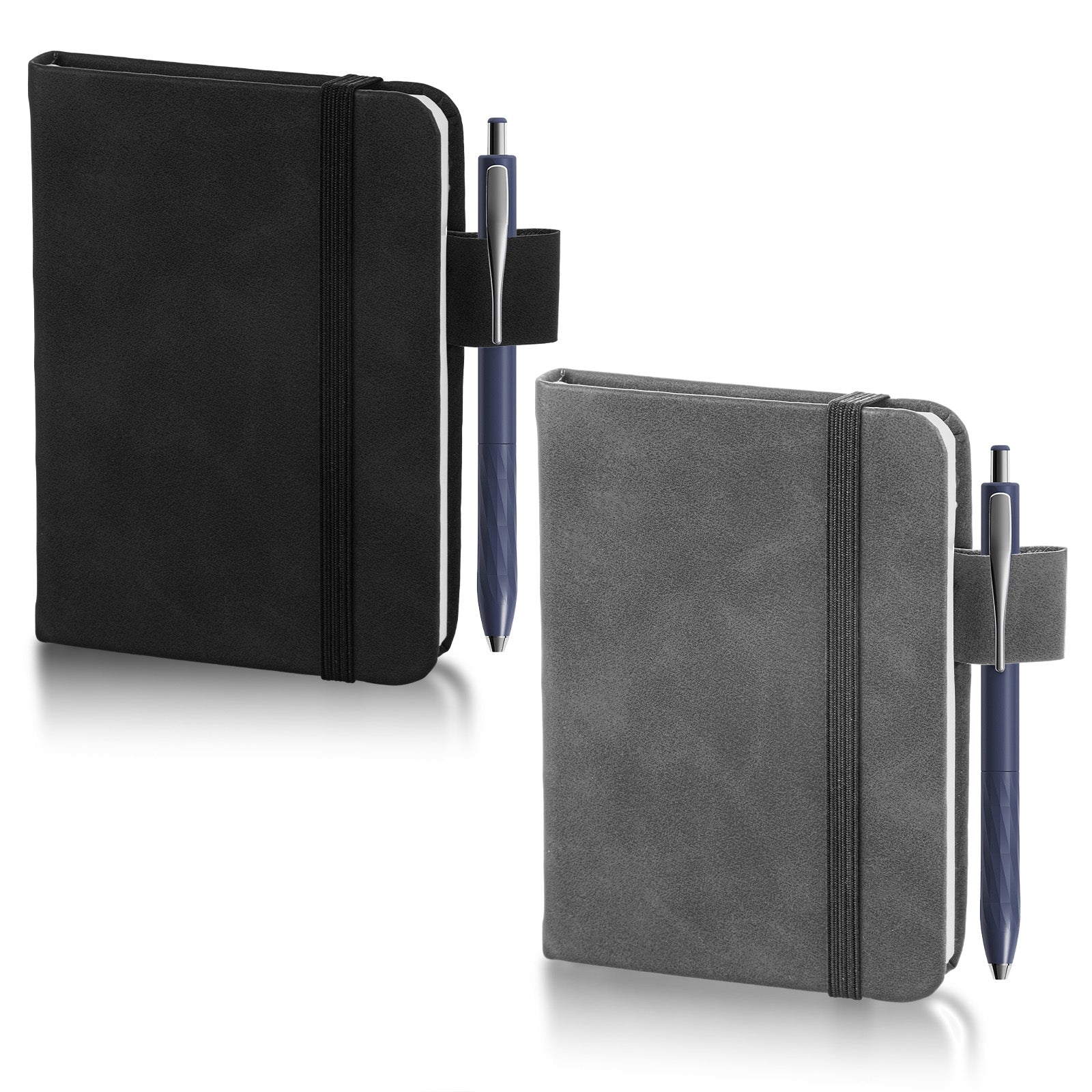 Tyqour 2pcs Small Leather Pocket Notebook Mini with Pen Holder, 4.29 x 3.11 Inch Pocket Note Pad 96 Sheets Compact Small Note Book for Office, Home, School Writing Supplies (Black & Gray)