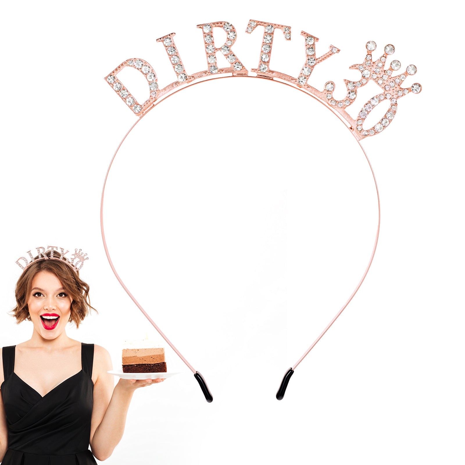Tyqour 30th Birthday Girl Headband Rhinestones Birthday Tiara Gold Hair Band Birthday Crown Headwear Dirty 30th Birthday Decoration for Happy Birthday Party Accessories Supplies Favors(Rose Gold)