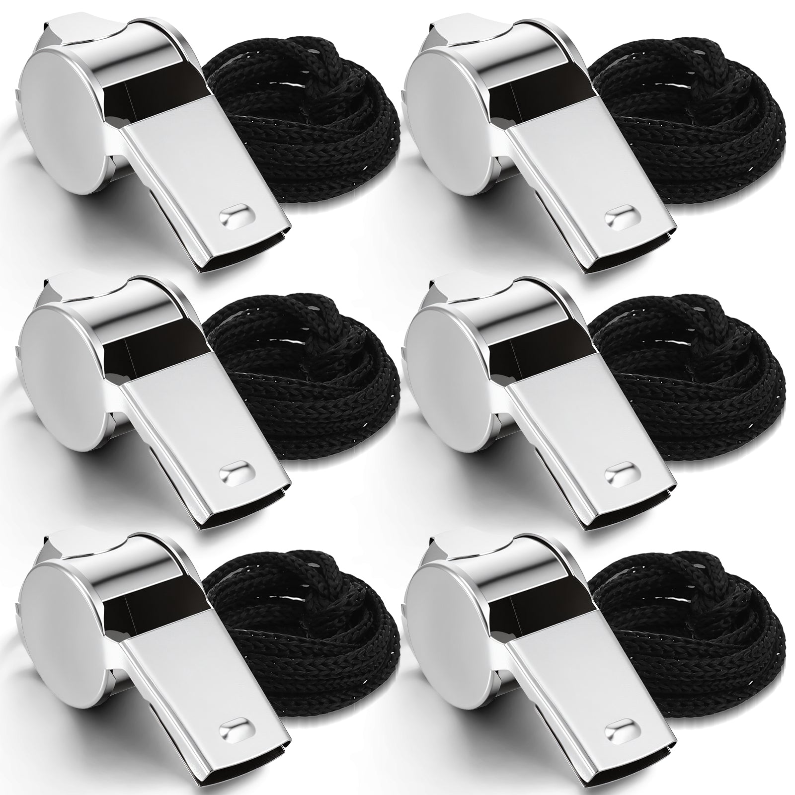 Tyqour 6 Pack Coach Whistle with Lanyard, Teacher Whistle, Loud Metal Whistle for Coaches, Referees, Lifeguard Whistle, Safety Whistle Bulk, Silver Stainless Steel
