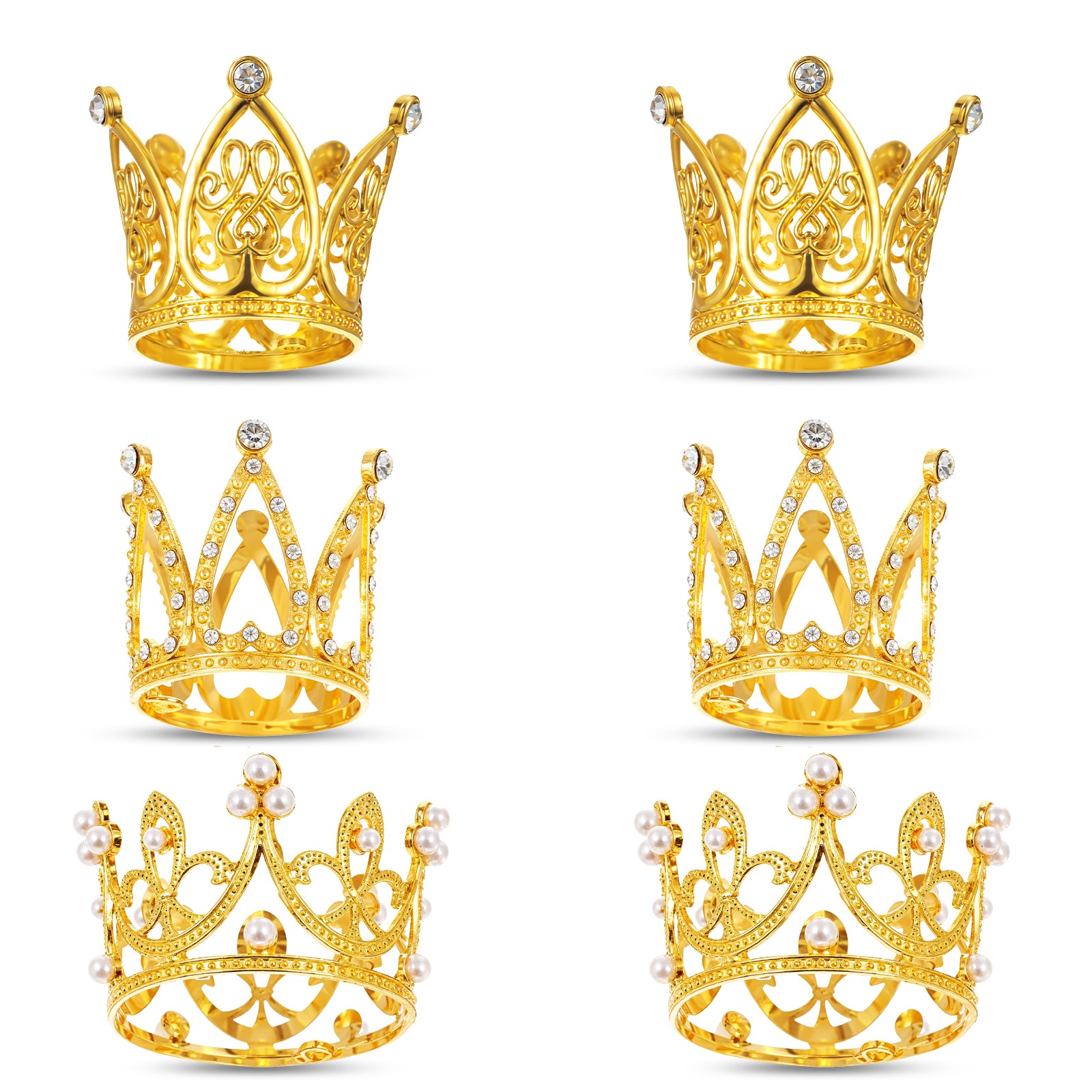 Tyqour 6 Pcs Gold Crown Cake Topper Princess Cupcake Toppers Mini Crown Flower Arrangements Bouquet for Wedding Graduation Mother's Day Birthday