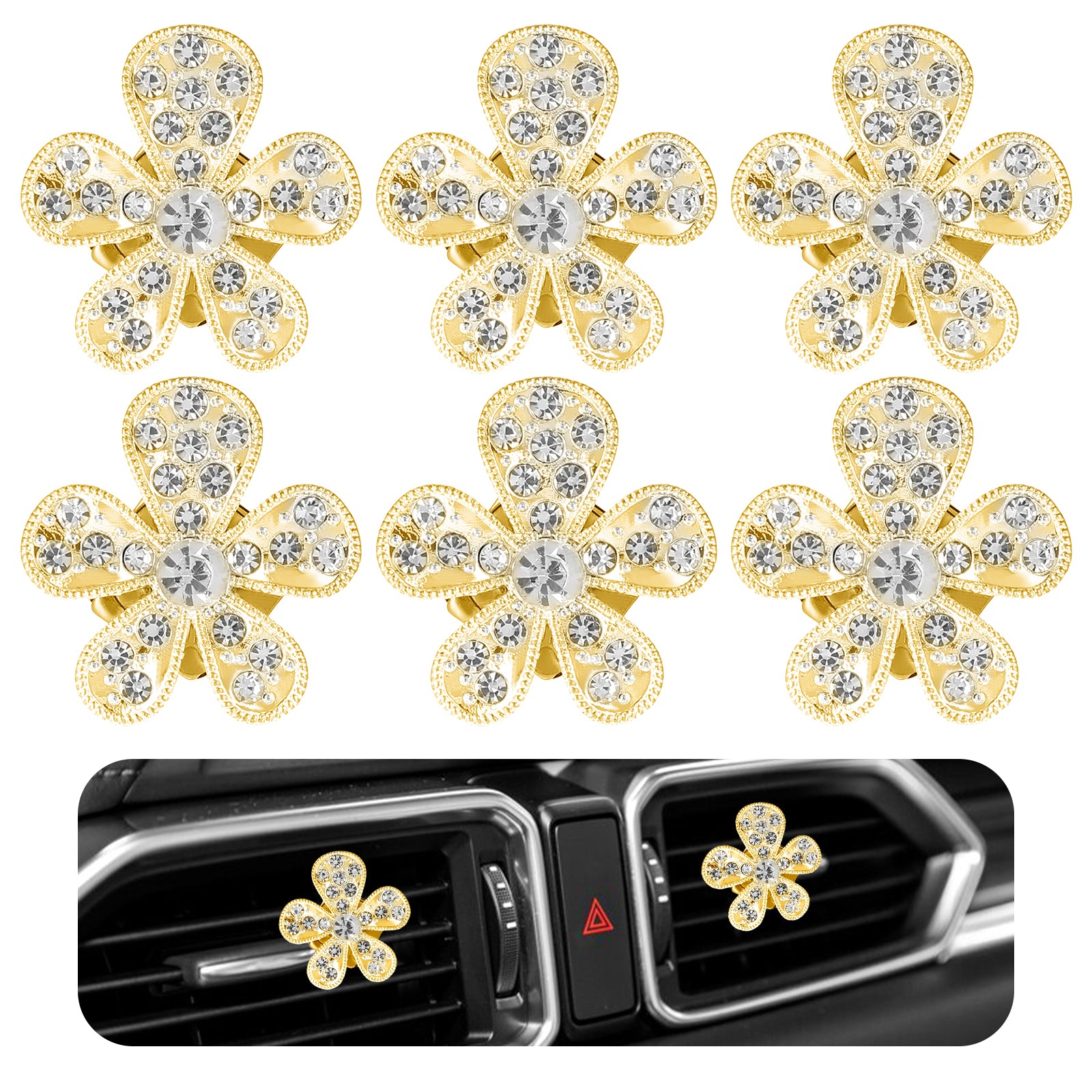 Tyqour 6Pcs Bling Daisy Air Vent Clips, Cute Flower Bling Car Vent Clips, Diamond Car Diffuser, Rhinestone Car Interior Decoration Charm, Bling Car Accessories for Women Girls(Gold)