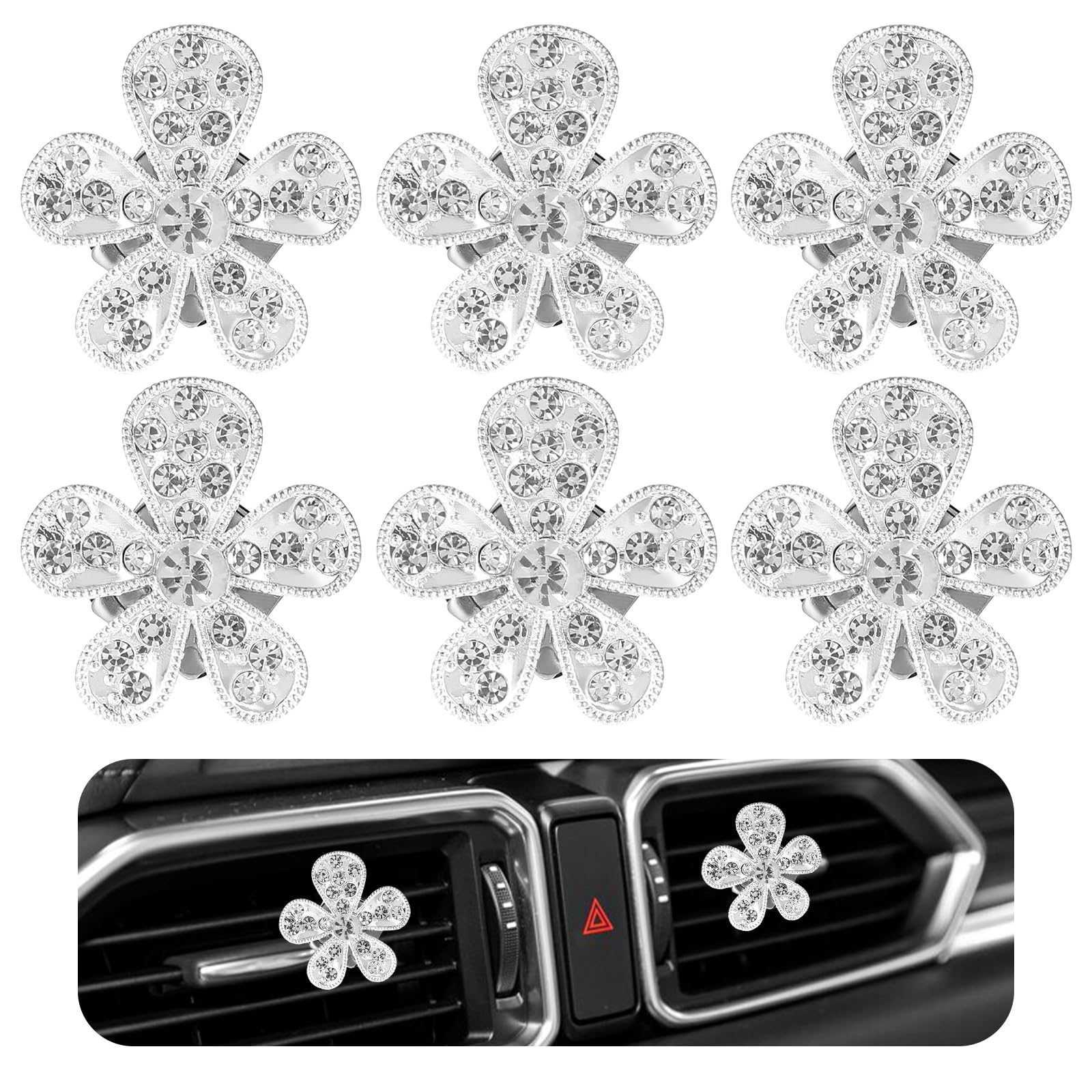 Tyqour 6Pcs Bling Daisy Air Vent Clips, Cute Flower Car Vent Clips, Diamond Car Diffuser, Rhinestone Interior Decoration Charm Accessories for Women Girls(Silver)