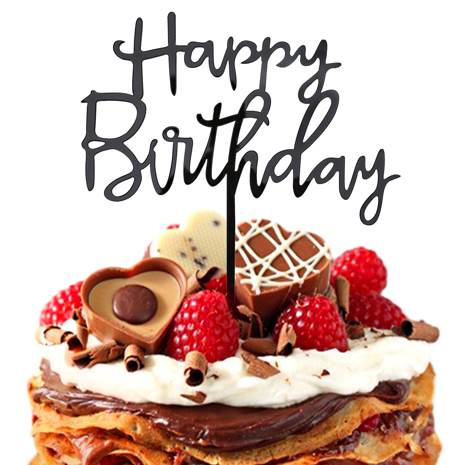 Tyqour Black Happy Birthday Cake Topper Birthday Cupcake Toppers Acrylic Cake Toppers Suitable for Birthday Cake Decorations Supplies