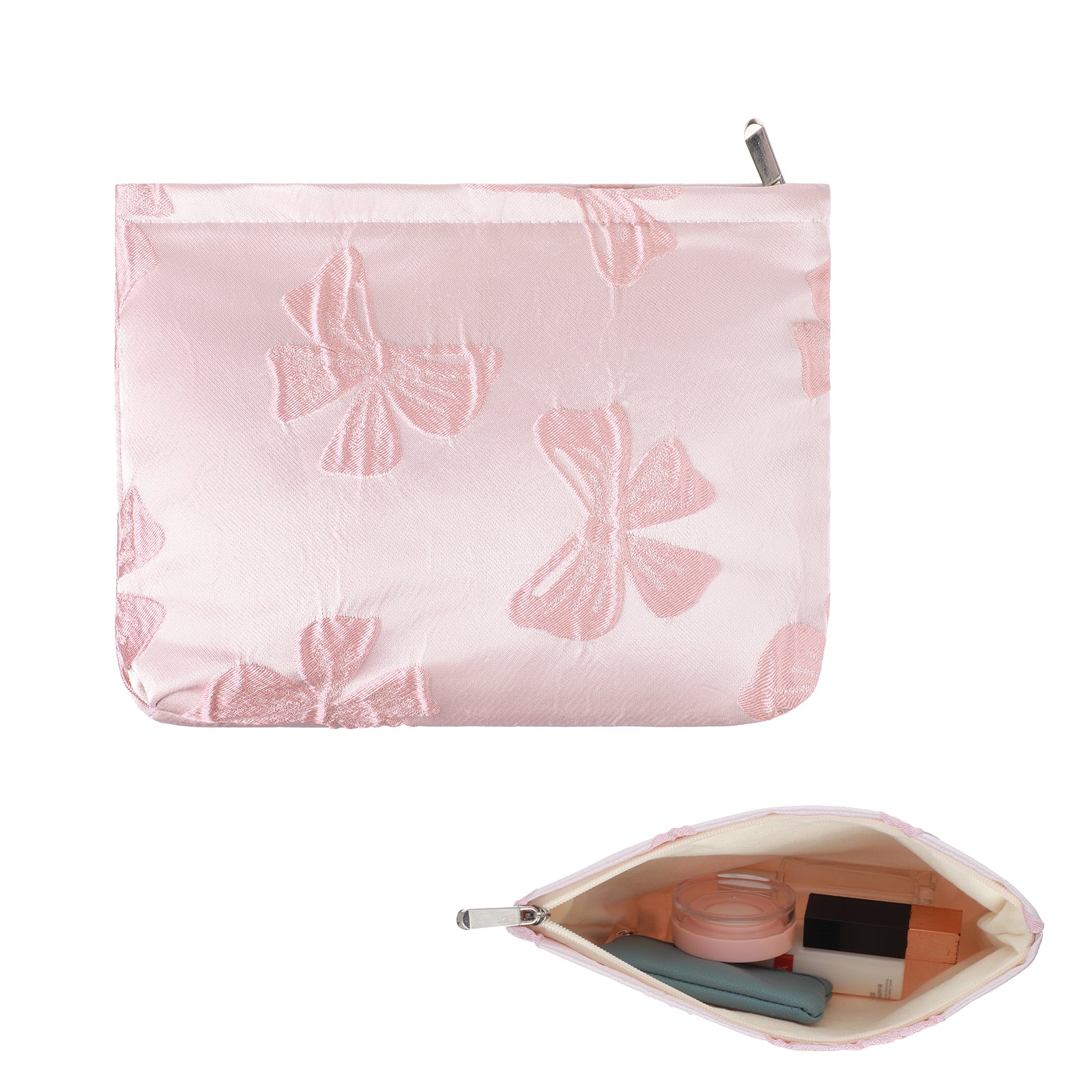 Tyqour Bow Makeup Bag Cute Makeup Bag Large Capacity Cosmetic Bag Aesthetic Zipper Toiletry Bag Portable Makeup Pouch for Women Girls Travel Storage Accessories