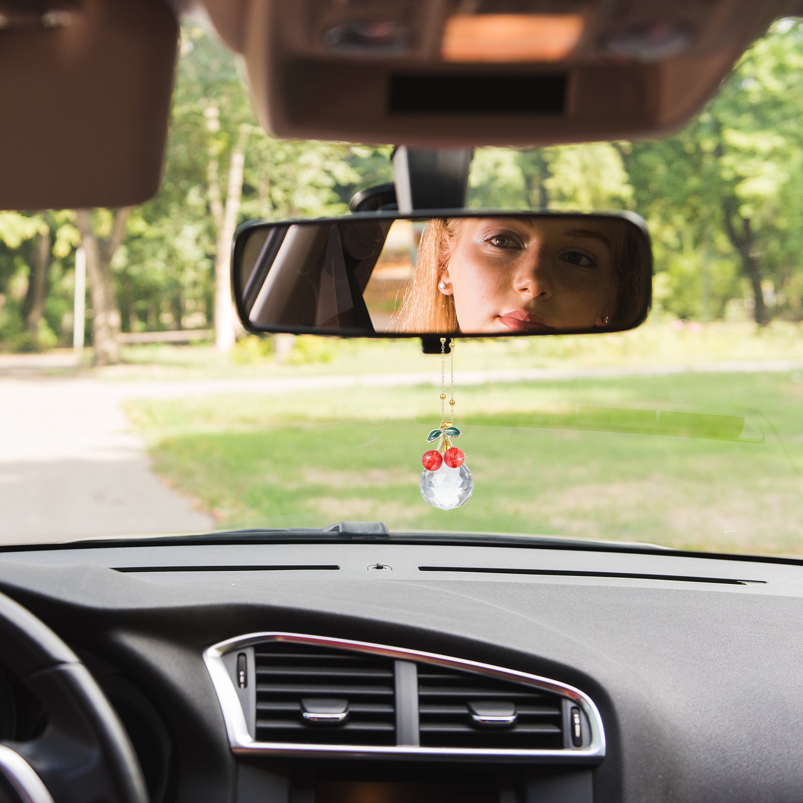 Enhance your ride with Tyqour's cherry car decor. This cherry crystal car hanging ornament adds charm to your rearview mirror. Perfect as a cherry bag charm too!