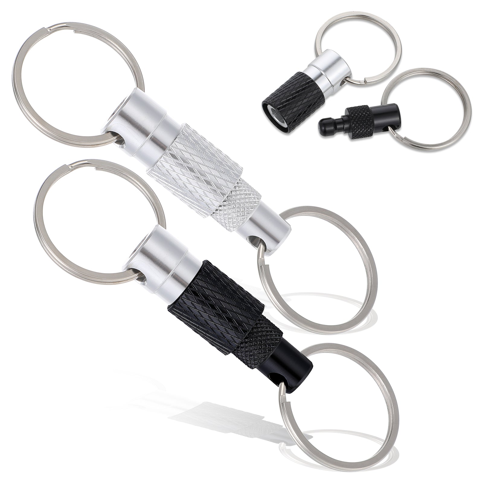 Tyqour Detachable Key Ring Quick Release, Small Titanium Key Ring Keychain Clips, 2pcs Quick Release Keychain for Car Keys, Black & Silver, Aluminum Alloy, Opp Bag Packaging