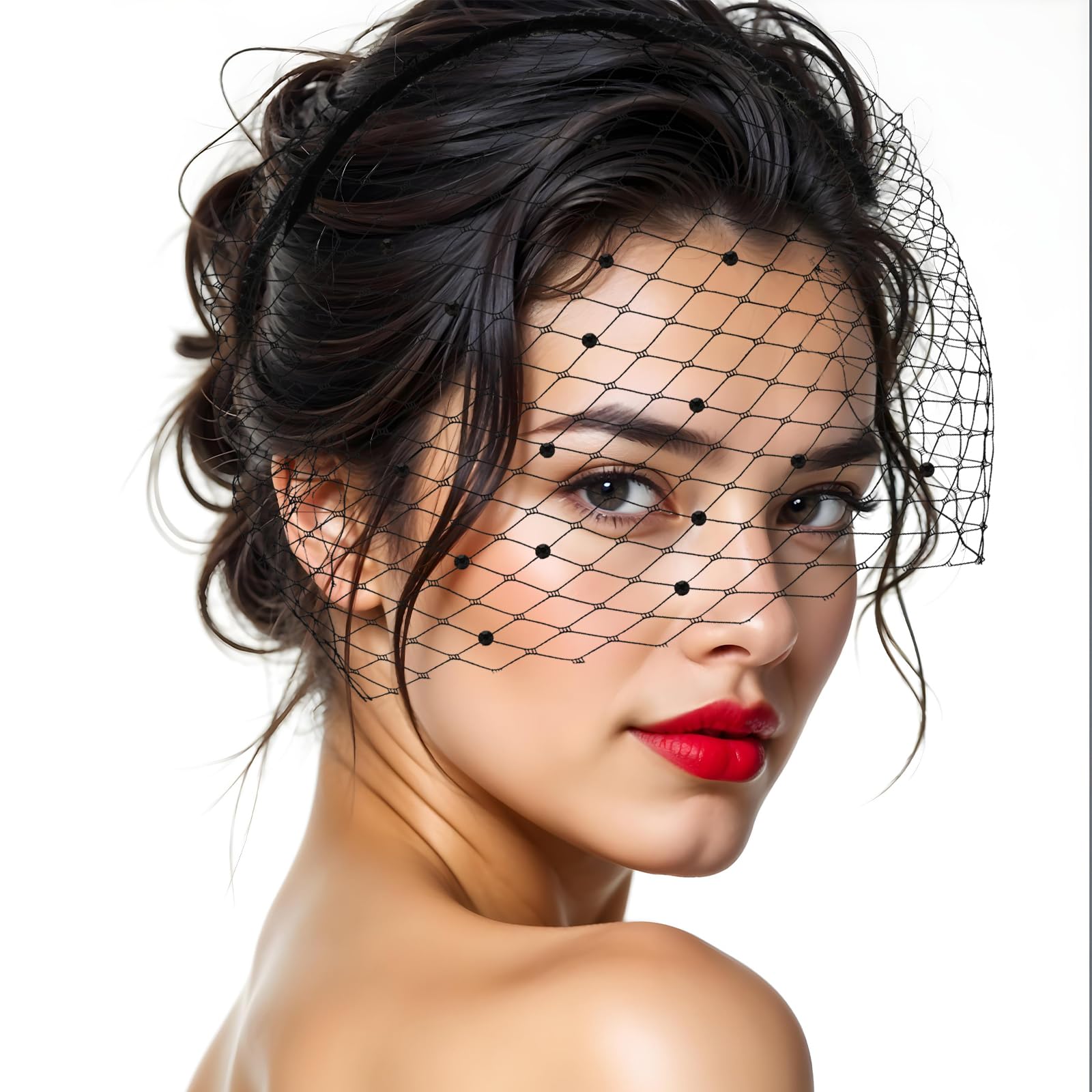 Tyqour Mesh Veil Headband Black Lace Veil 1920s Fascinator Headpiece Bridal Wedding Tea Party Fascinator Veil For Woman Girl