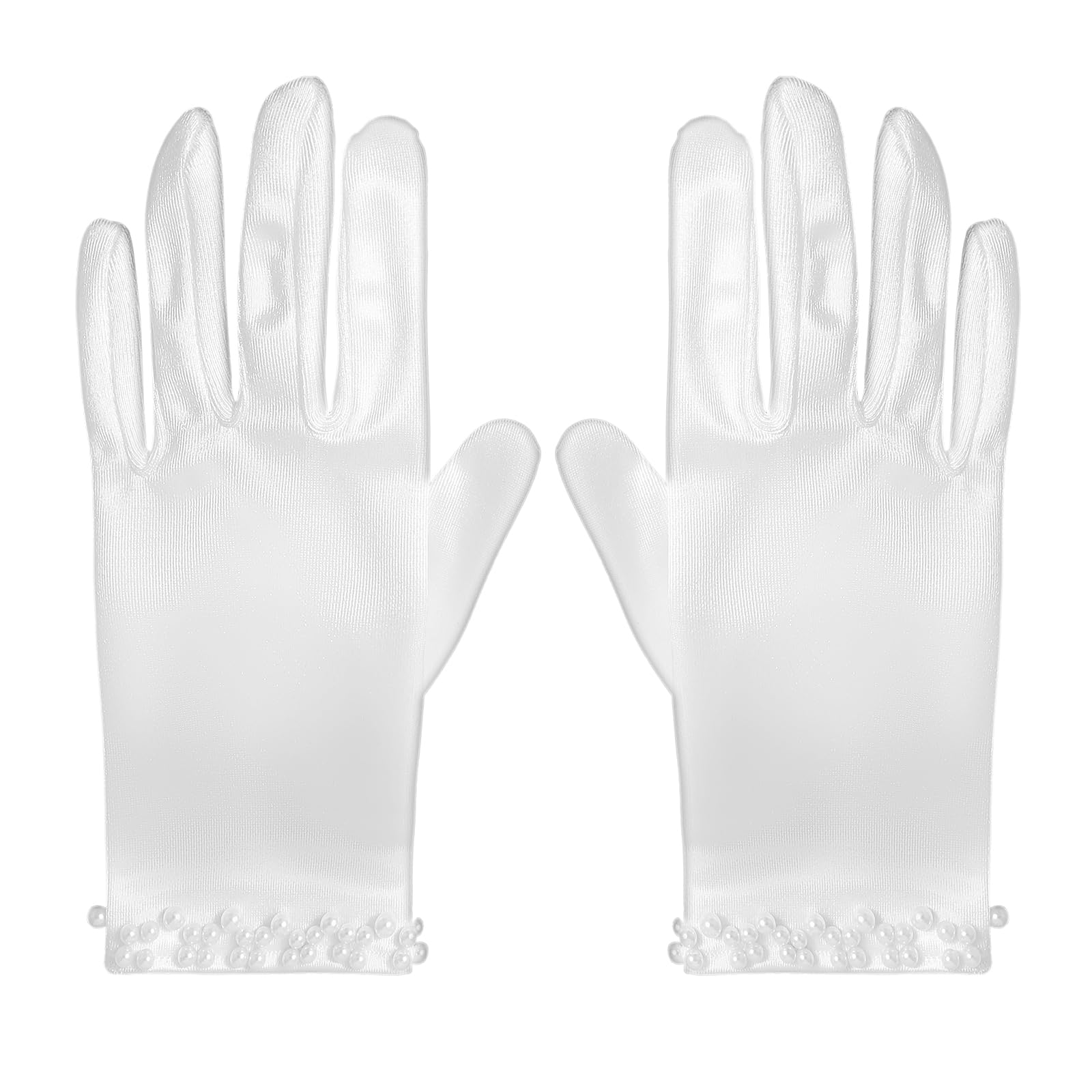 Tyqour Satin Pearl Bridal Gloves, Short Wedding Gloves, Tea Party Gloves for Women, Dress Gloves for Women and Girls for Wedding Opera Dinner Party Dance