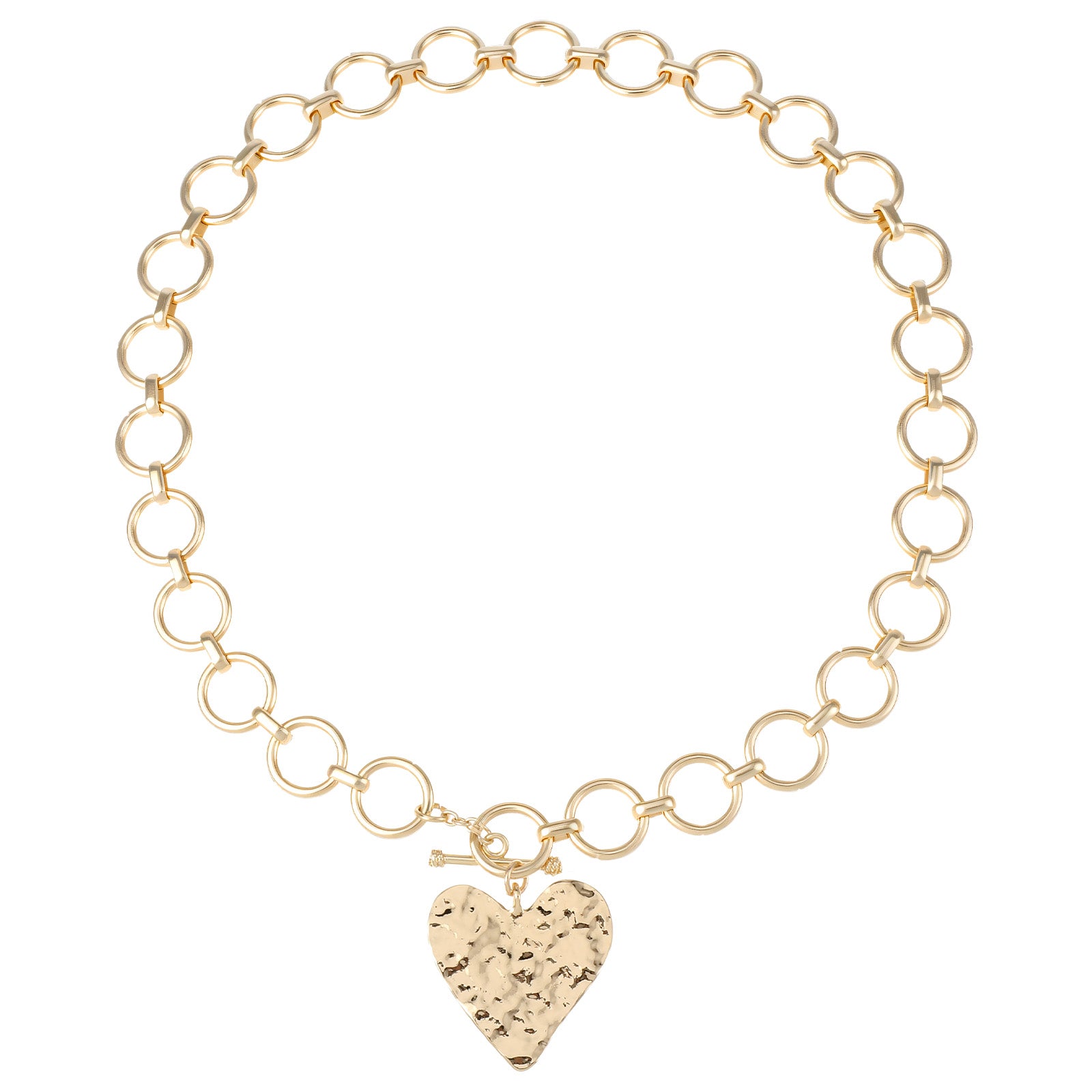 Xindojuz 1 PCS Chunky Gold Necklace for Women, Large Statement Hammered Heart Pendant Necklace, Gold Plated Vintage Chunky Paperclip Chain Necklaces for Women Trendy Jewelry Gift