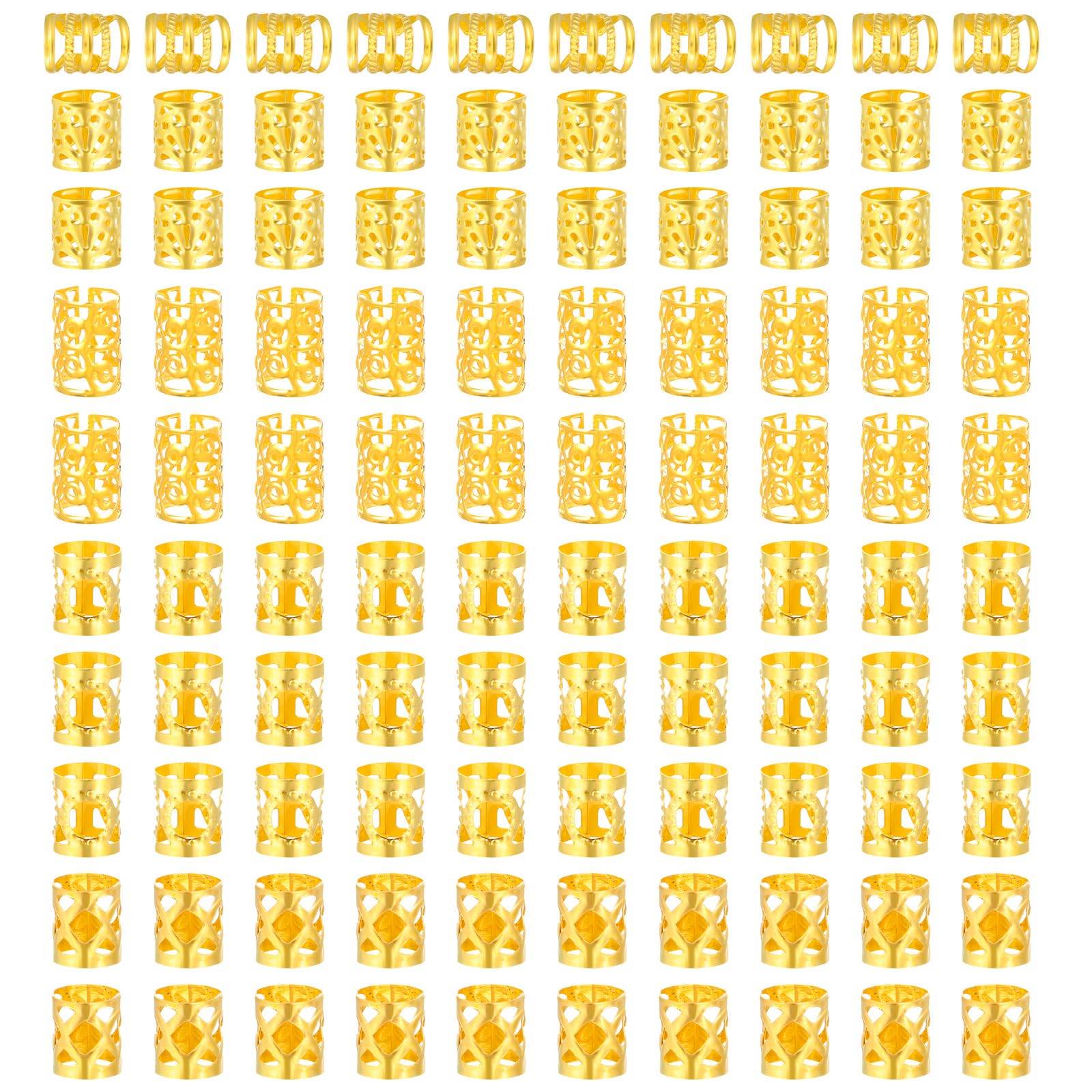 Xindojuz 100 PCS Gold Hair Jewelry for Braids, Hair Cuff Loc Jewelry for Hair Dreadlock Beads Hair Charms Metal Gold Braids Rings Cuffs Clips Decorations for Women Men Dreadlock Braid Accessories