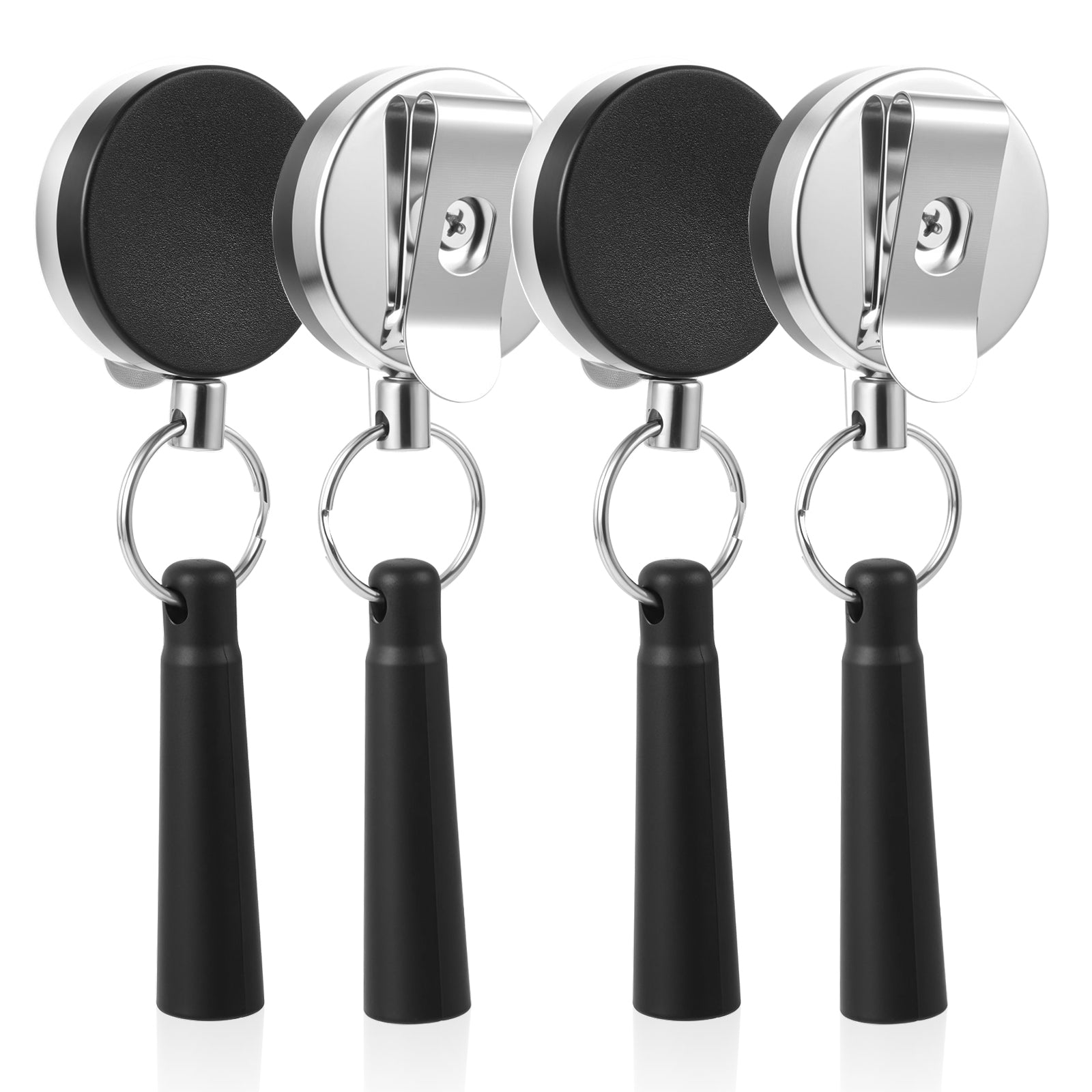 Xindojuz 4 Pack Retractable Pull Pencil Holder, 24" Metal Pen Clip Elastic Silicone Lanyard Pen Holder Leash Ideal for Carpenters Nurses Mechanics Architects Office Workers
