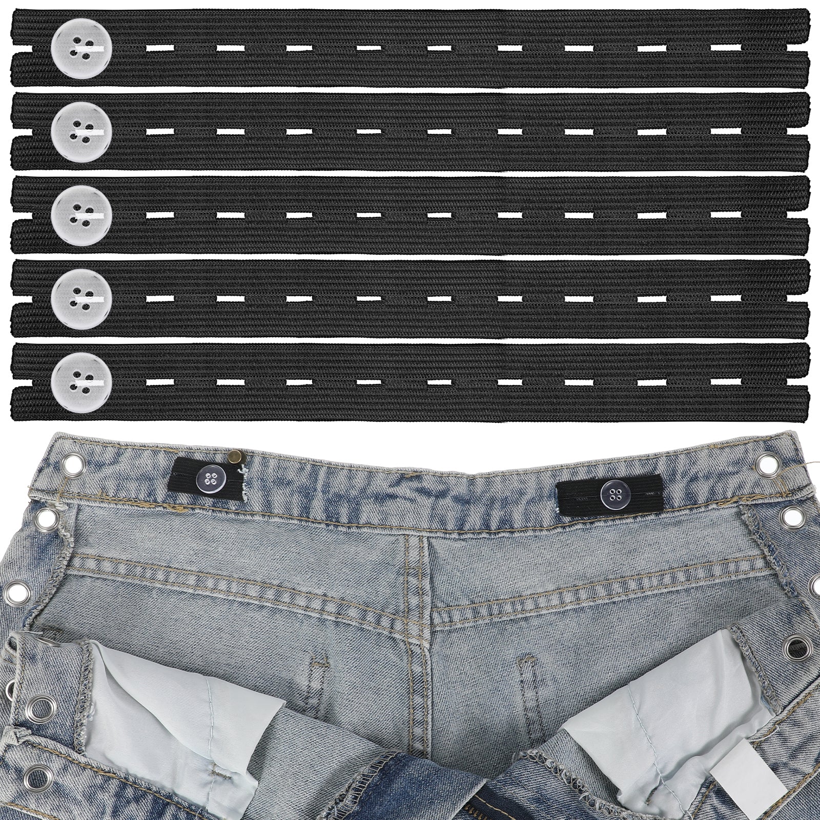 Xinjoduz 10 PCS Pants Waist Tightener Jean Size Adjuster Pants Button Tightener Waist Adjuster for Loose Jean Adjustable Elastic Extenders Waistband with 20 Buttons Needles and Thread Belt(black)