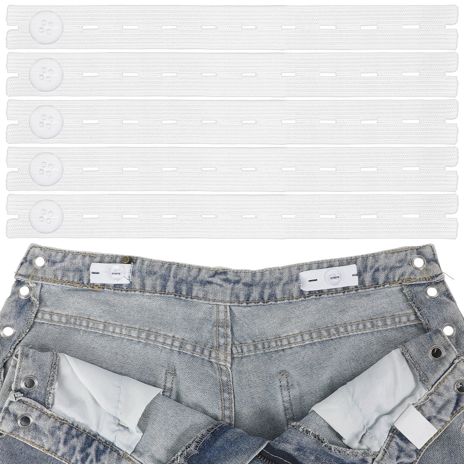 Xinjoduz 10 PCS Pants Waist Tightener Jean Size Adjuster Pants Button Tightener Waist Adjuster for Loose Jean Adjustable Elastic Extenders Waistband with 20 Buttons Needles and Thread Belt(white)
