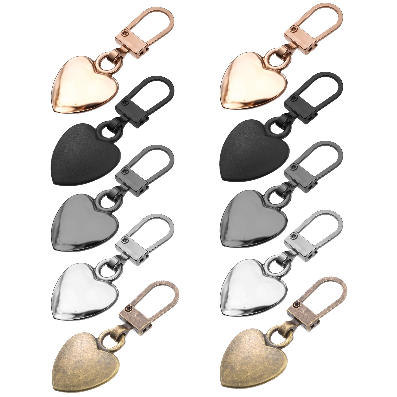 Xinjoduz 10 PCS Zipper Pull Charm, 1.6 Inch Heart Shaped Zipper Replacement Detachable Metal Zipper Pull Tabs Zipper Lock for Backpacks Coats Pants Suitcase Purse Luggage Fasteners(5 Color)