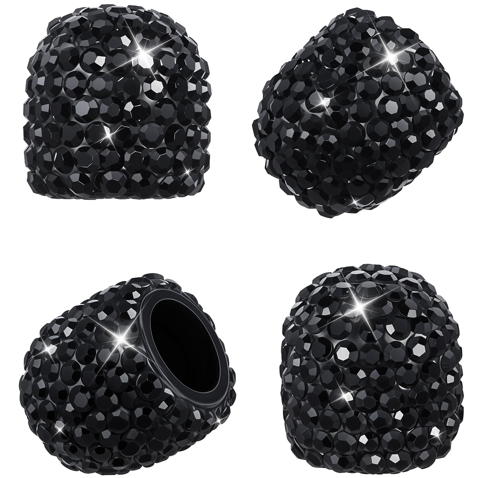 Xinjoduz 4 PCS Valve Stem Caps, Black Sparkling Tire Valve Caps Handmade Rhinestone Stem Air Cap Cover Attractive Dustproof Bling Car Accessories for Trucks Bikes Motorcycles Bicycles