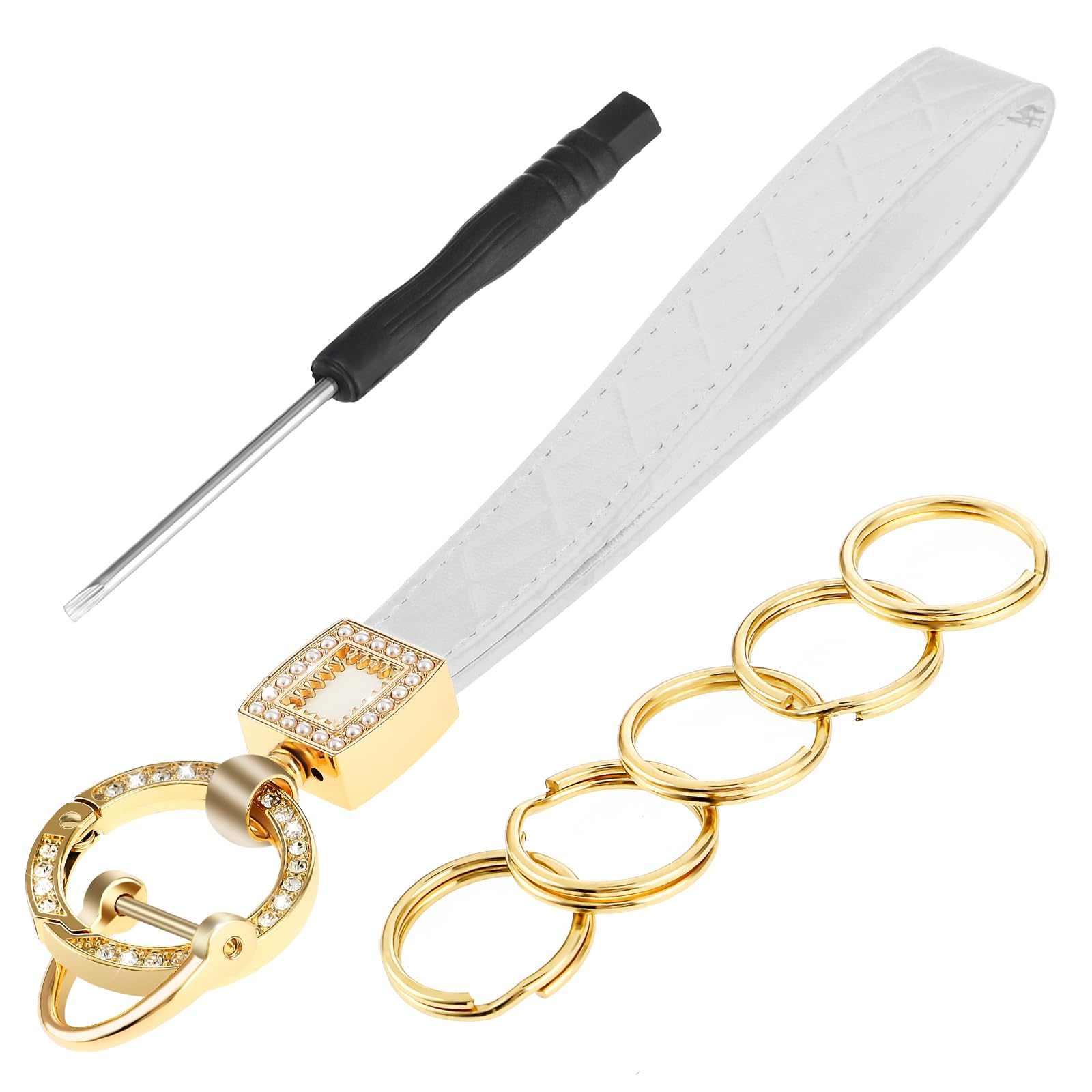 Xinjoduz Key Wristlet for Women Wristlet for Keys Microfiber Leather Car Keychain Leather Car Keychain Bling Leather Car Keychain With Sparkly Rhinestones Anti Lost D Ring Fob Key Chain (White)