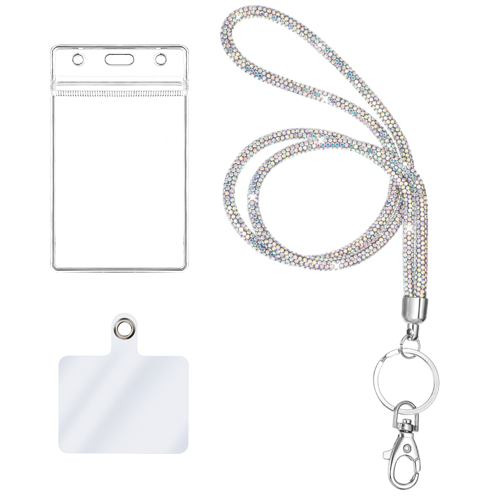 Ymapinc 34.8'' Lanyards with Card Holder Sparkle Lanyard for Women with Ab White Crystal, Rhinestone Id Badge Holder, Lanyards for Neck with Card Holder, Bonus PVC Card Holder, Cellphone Safety Tab