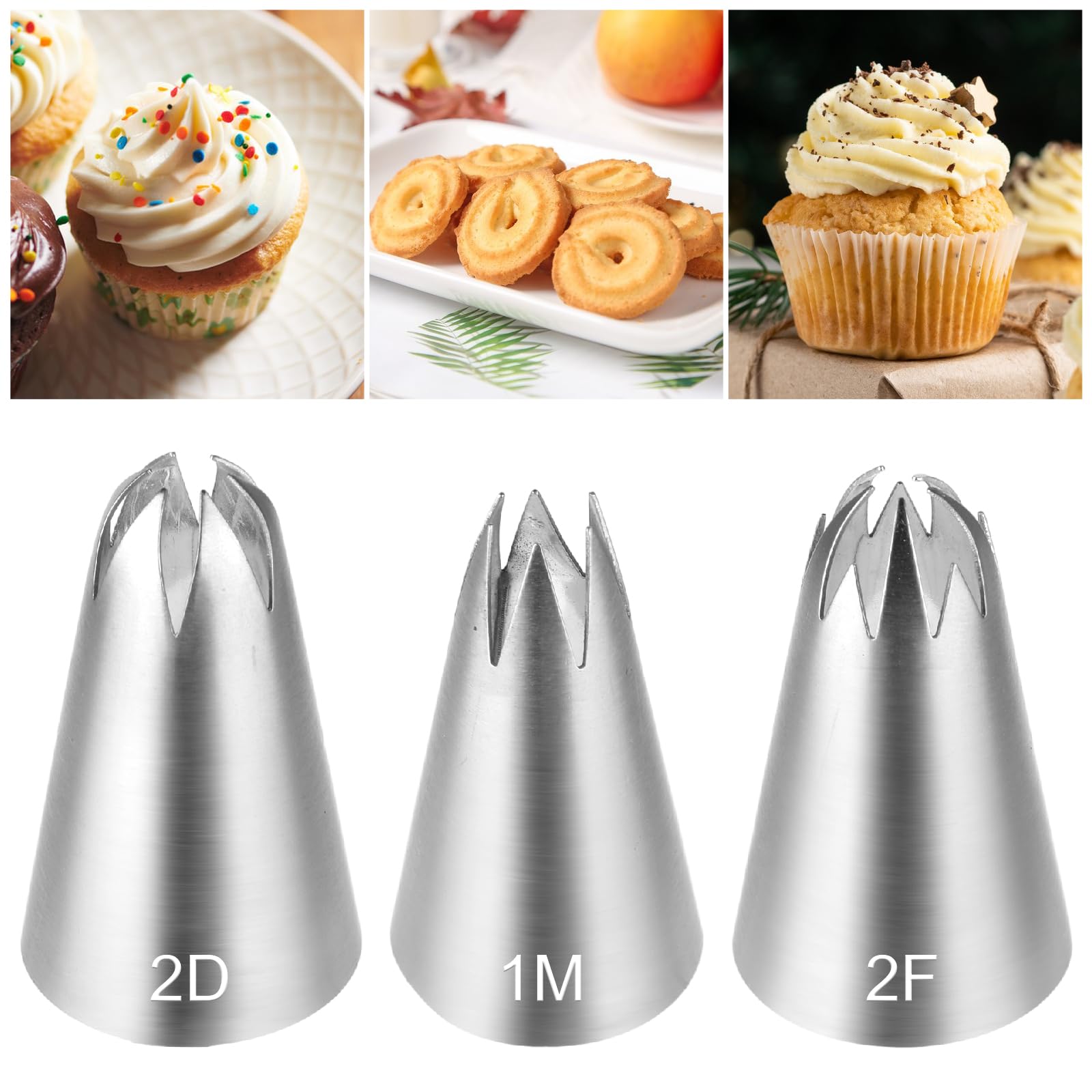 Ymapinc 3PCS Piping Tips Set(1M 2D 2F),Stainless Steel Frosting Piping Kit,Decorating Tips,DIY Cream Rose Flower Cake Decorating Cookies Dessert