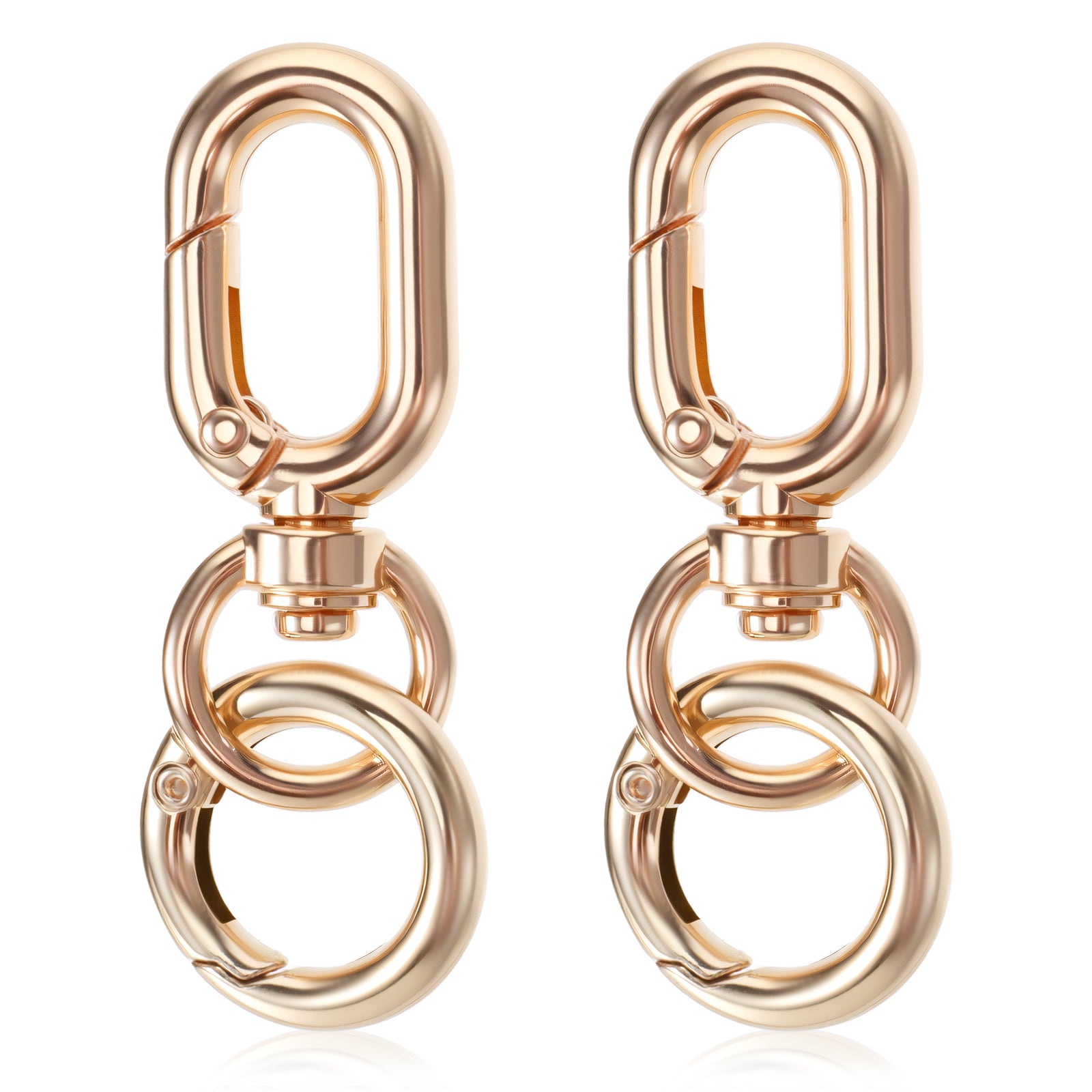 Ymapinc 6Pcs Gold Keychain Clip, Multifunctional Double Opening Keychain Clasps, 360° Swivel Gold Key Ring Mini Buckle with Jump Rings for Jewelry Making