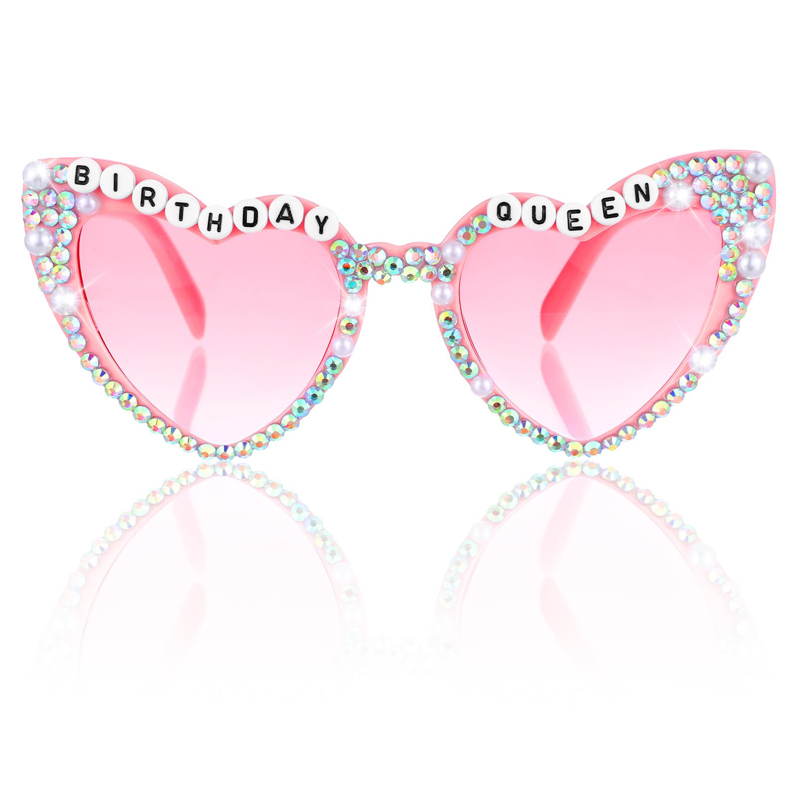 Ymapinc Birthday Queen Heart Shaped Sunglasses,Women Pink Birthday Decorations Pearl Heart Sunglasses for Women Birth Day Party Favors