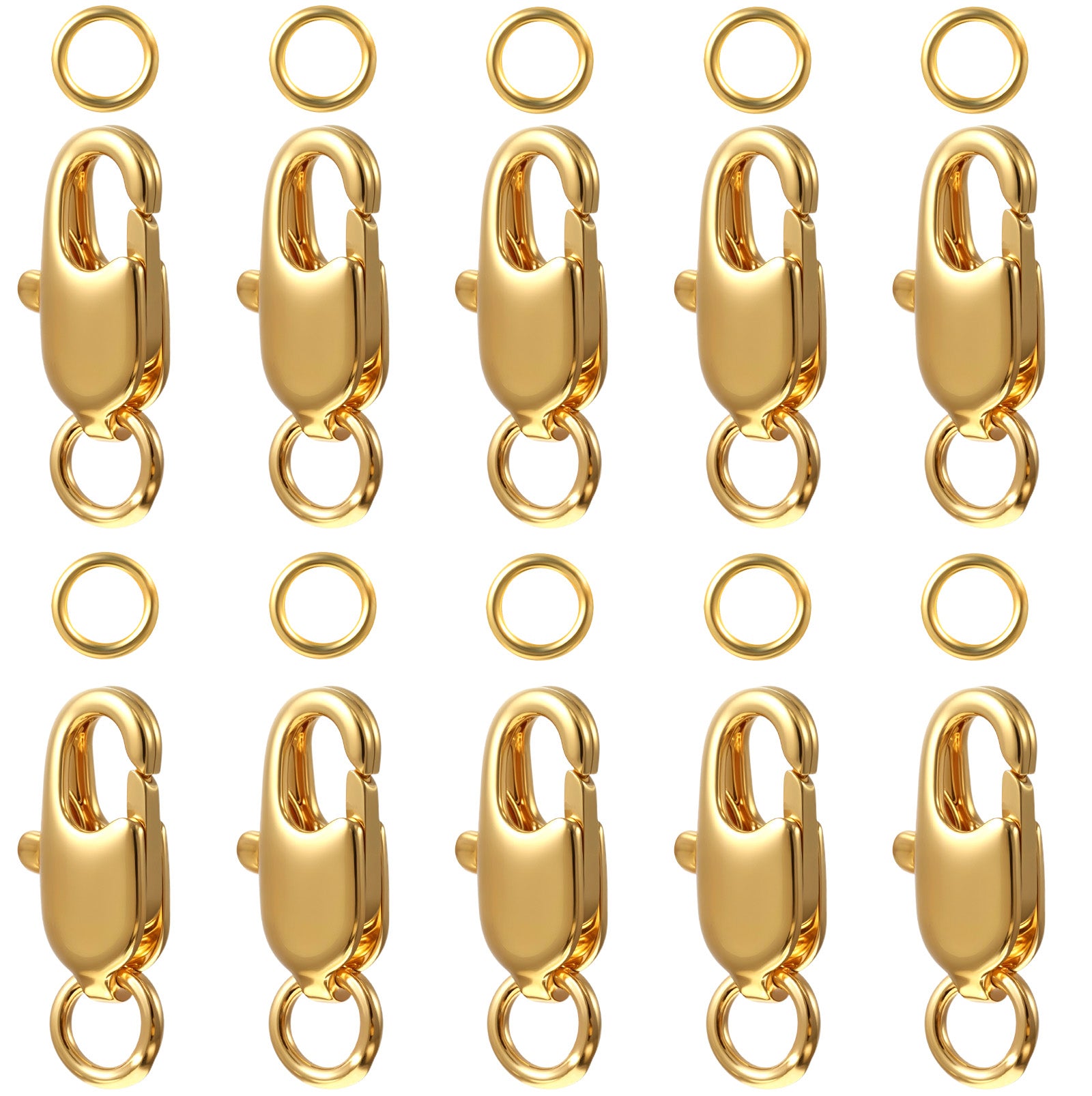 Ymapinc Gold Lobster Clasps for Jewelry Making, Closures with Jump Ring for Women Jewelry Making, Lobster Claw Clasps for DIY Bracelet Necklace Bracele