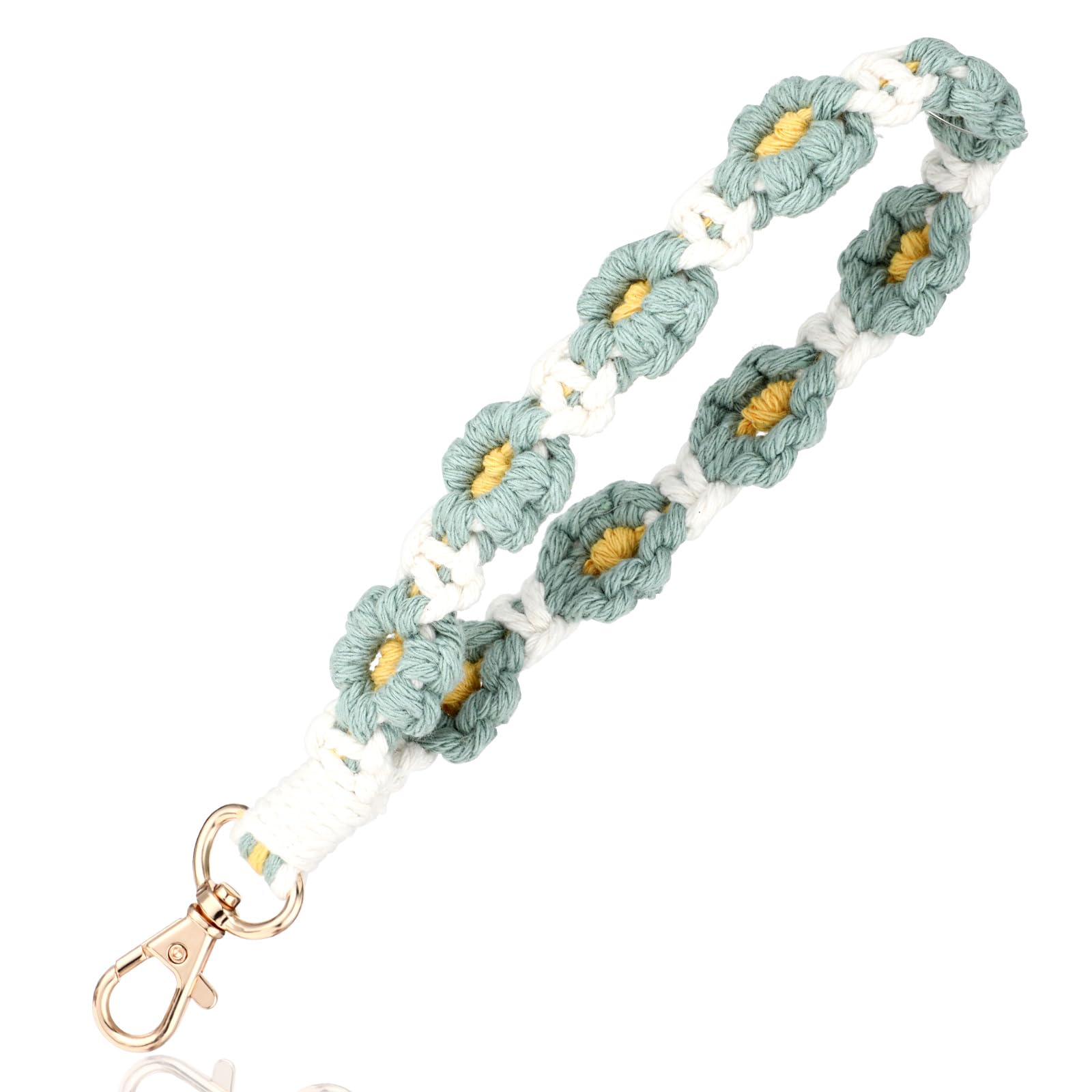 Ymapinc Handmade Macrame Wristlet Keychain with Key Ring, Daisy Pattern, Cottony Rope & Zinc Alloy, Bohemian Style, Green